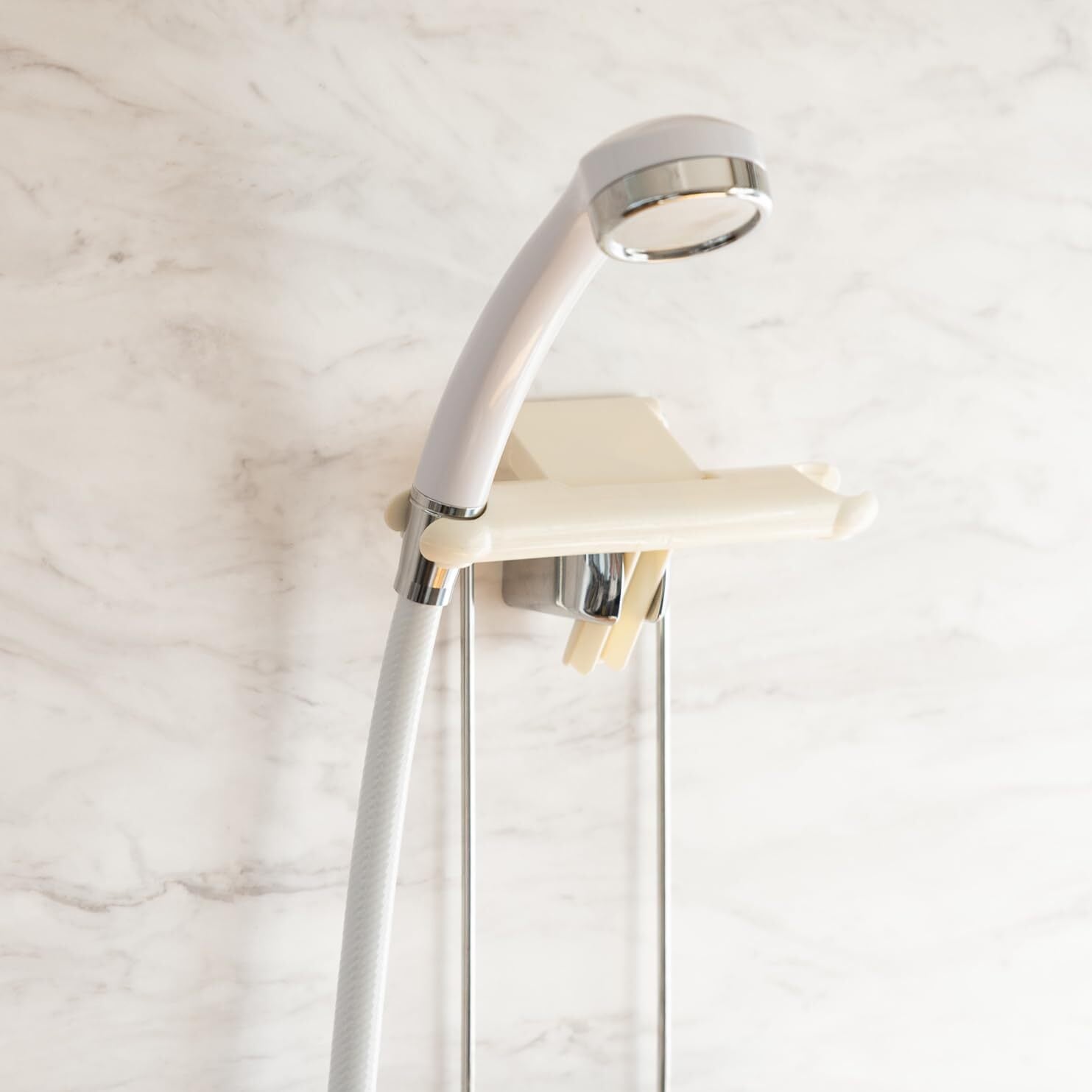 シャワーヘッドは、左右どちらか使いやすい方にさっと掛けることができます。