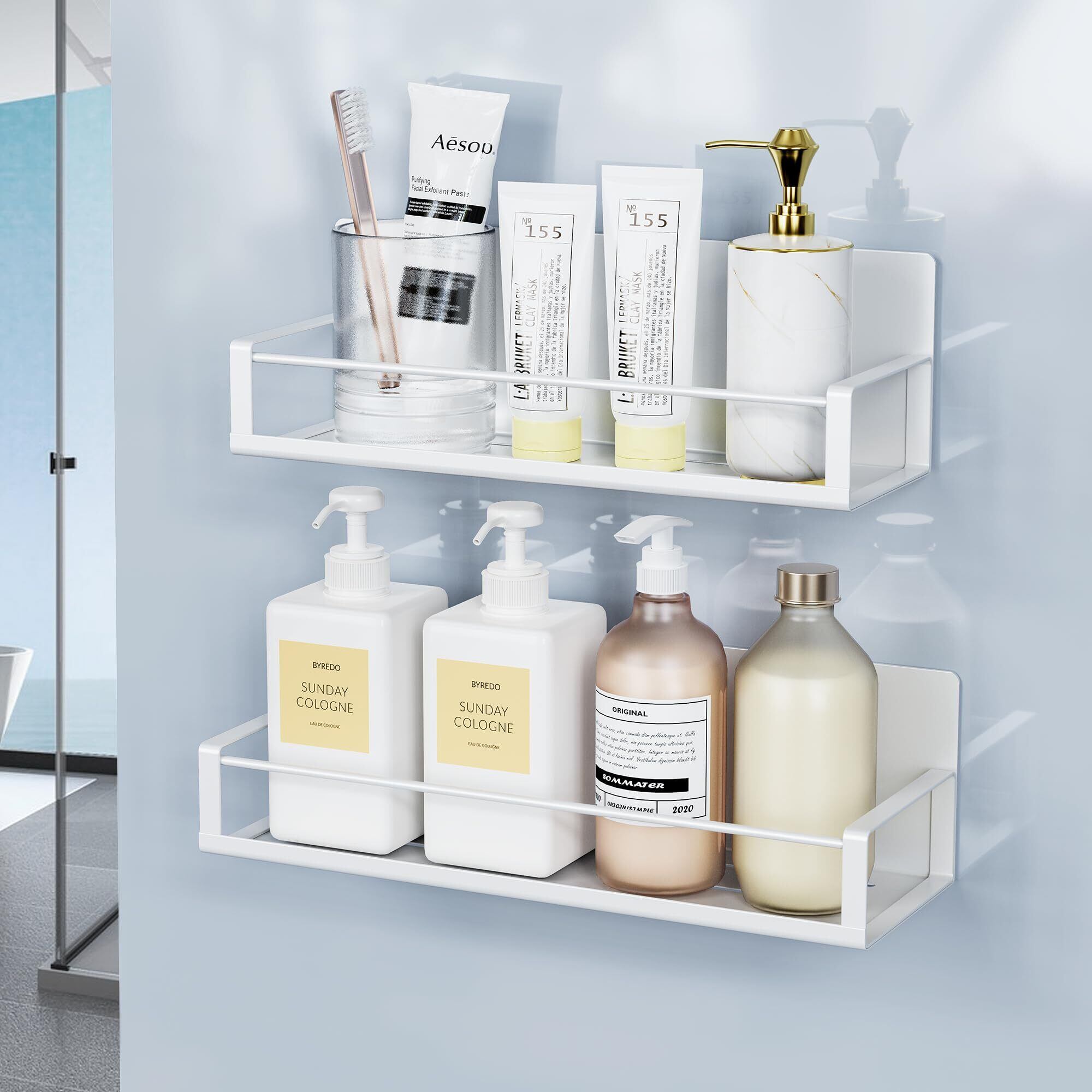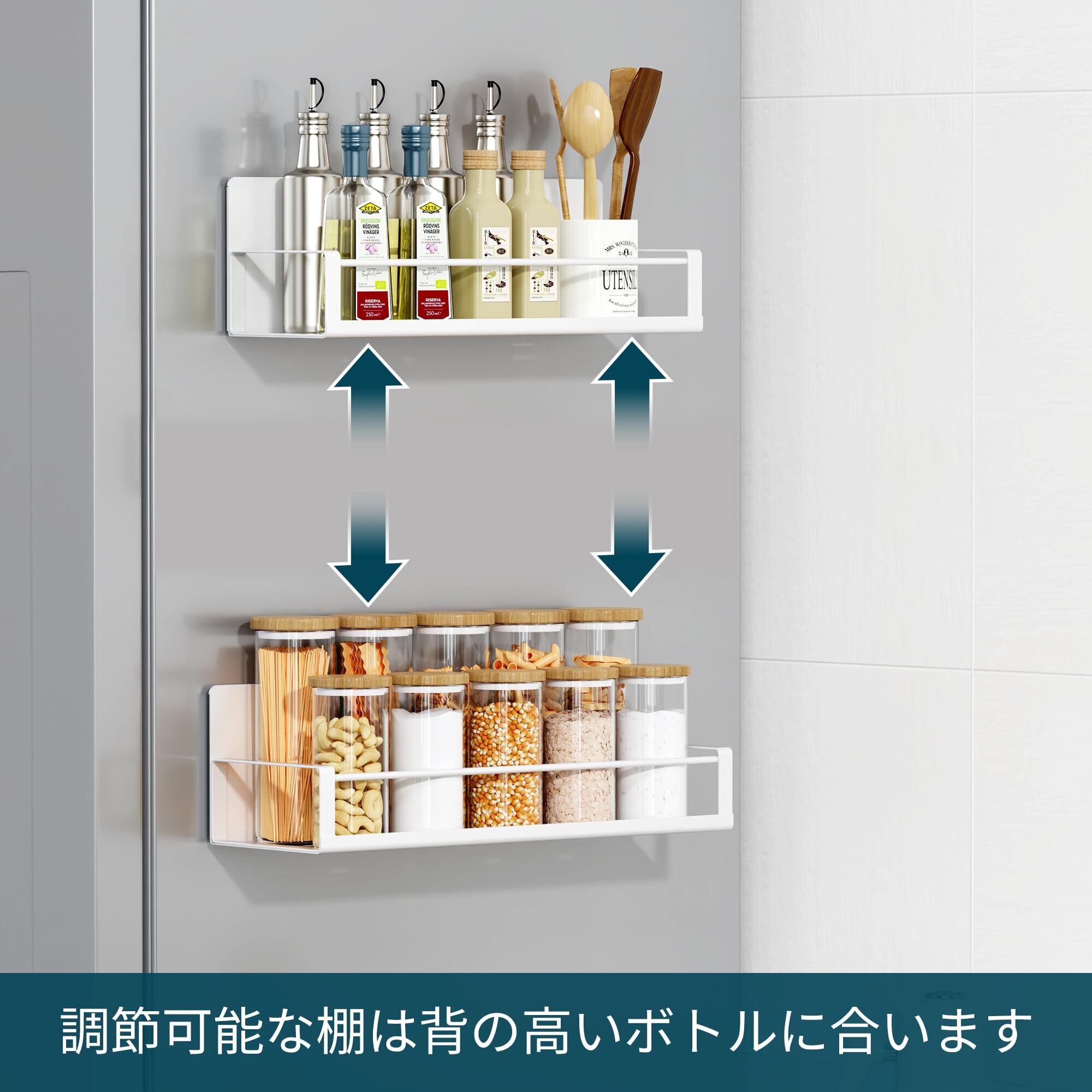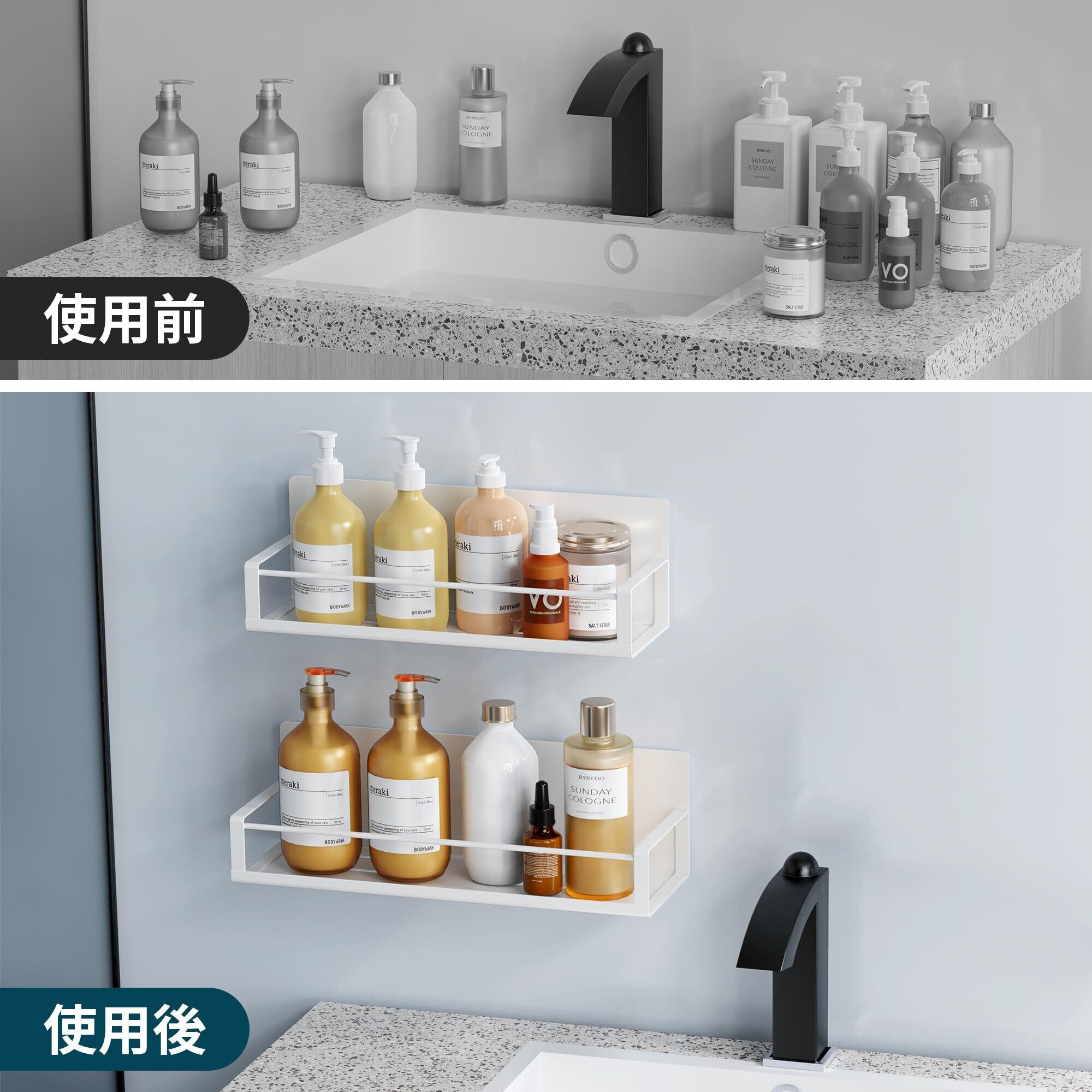 どこでも使える、生活の質を向上させる:マグネット収納ラックはバスルームだけでなく、洗面所、キッチン、リビング、バルコニー、寝室にも適する;間隔を自由に調節できて収納スペースを有効活用・節約でき、コーナースペースを十分に活用できるシェルフ!。