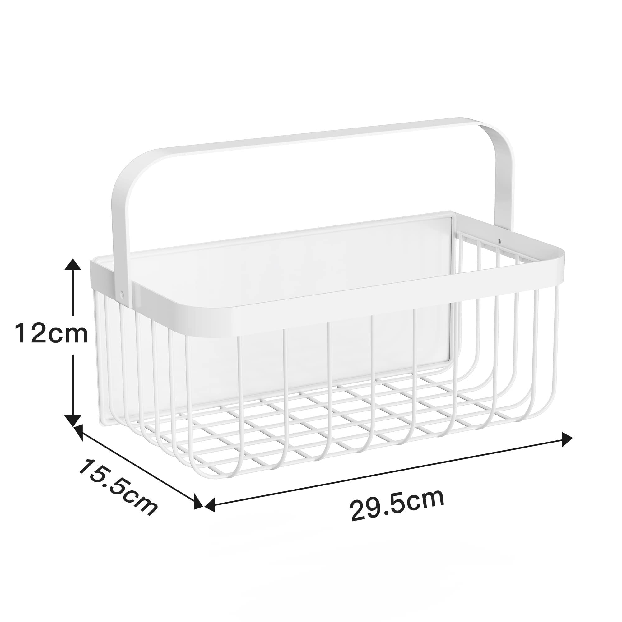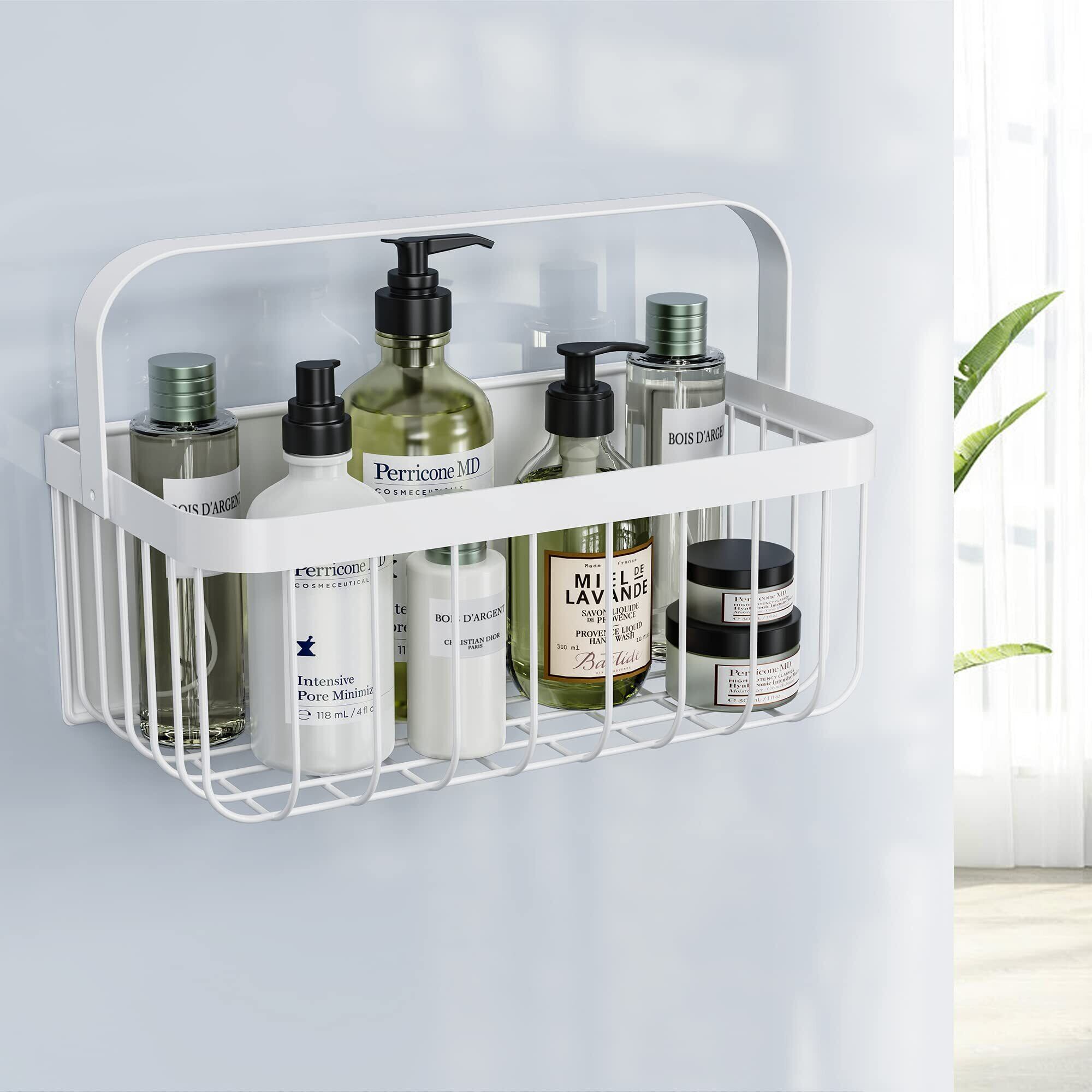 マグネット バスルームバスケット お風呂バス ラ ック 浴室用ラ ック シャワーラ ック 折りたたみ式ハンドル お風呂 持ち手付き バスルーム 収納棚 マグネット吸着式壁掛け 小物フ ック付き 水切り 穴あけ不要 錆びにくい 浴室とキッチンの収納ラ ック おもちゃ収納 (ホワイト, 1段式)