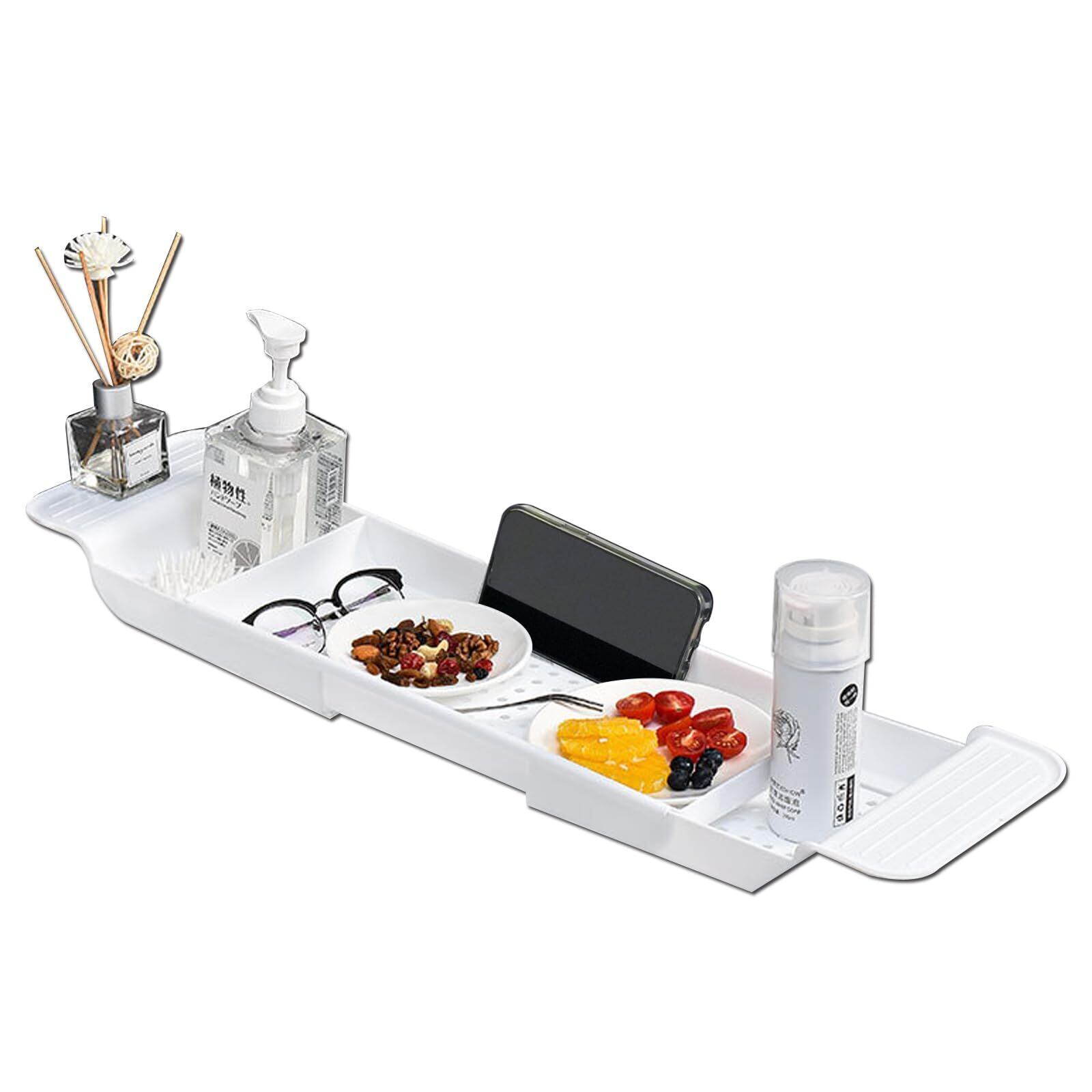 【マット加工によるズレ防止】 バスタブトレー 伸縮式 水切り シリコン滑り止め タブレットスタンド付き バステーブル バストレー 伸縮サイズ55~75cm ホワイト SUNGRAN