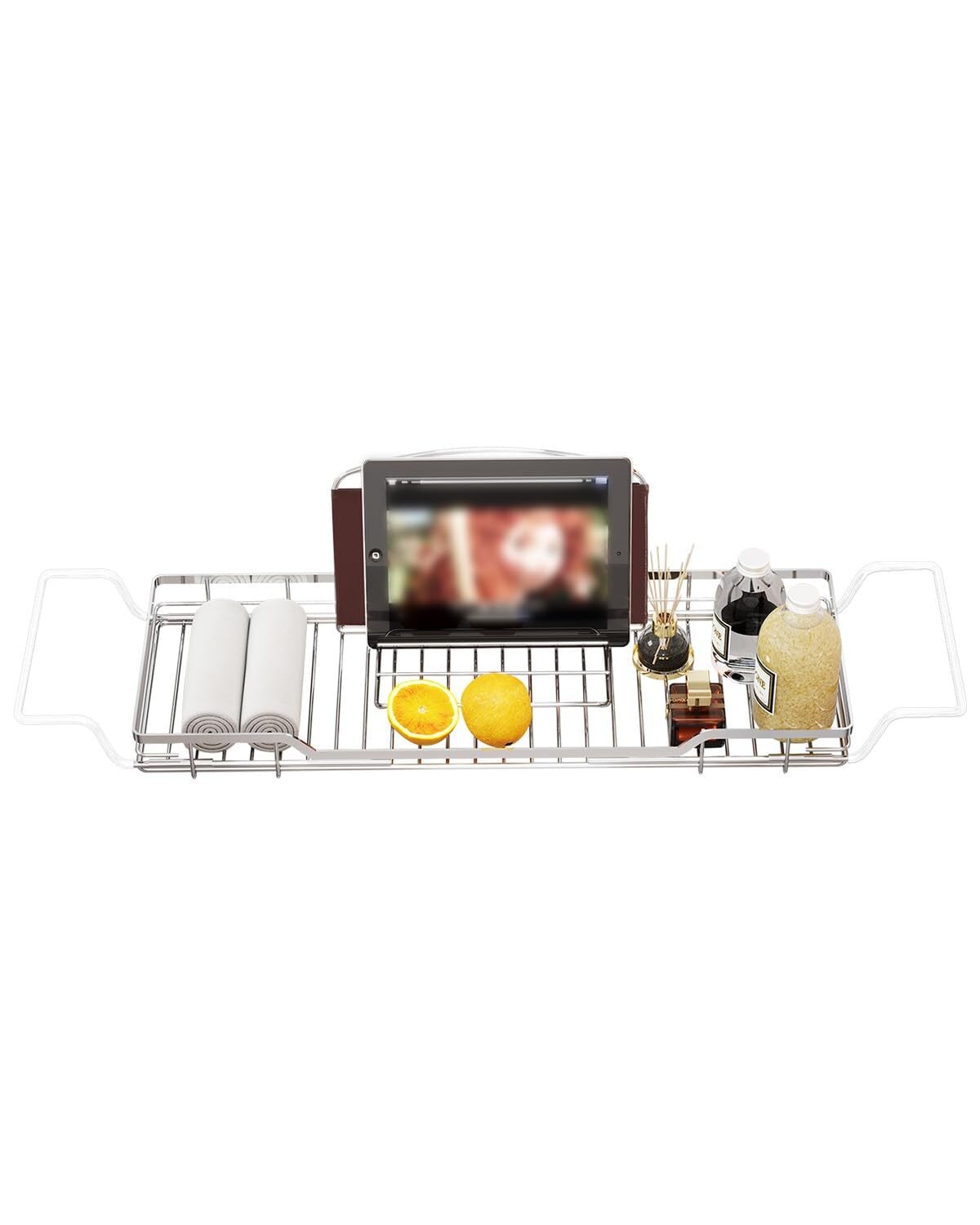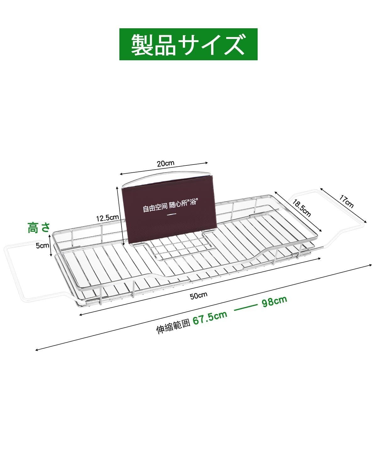 伸縮設計: 67.5-98 cmまで調整可能な304ステンレス製の浴槽トレイで、様々なサイズの浴槽に対応