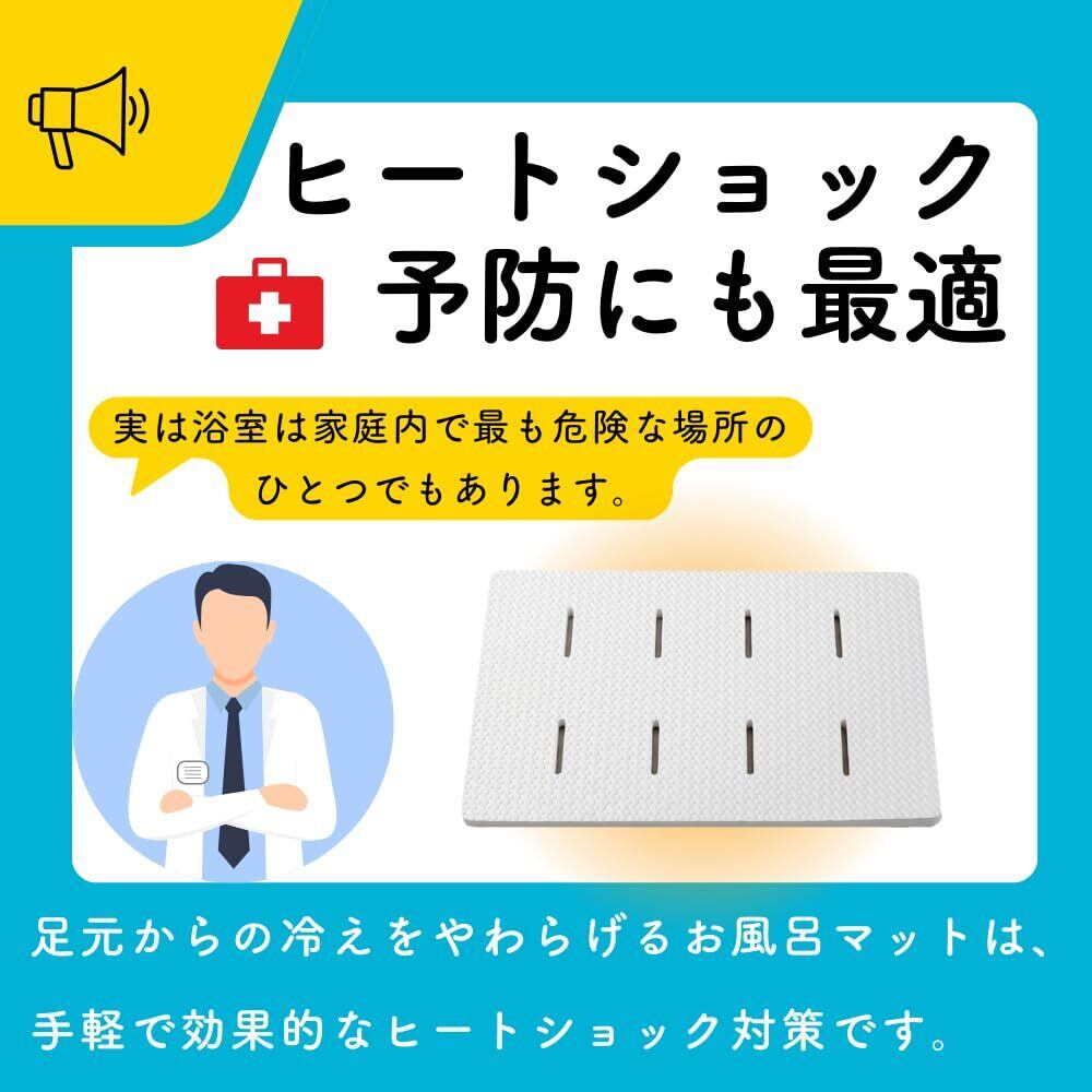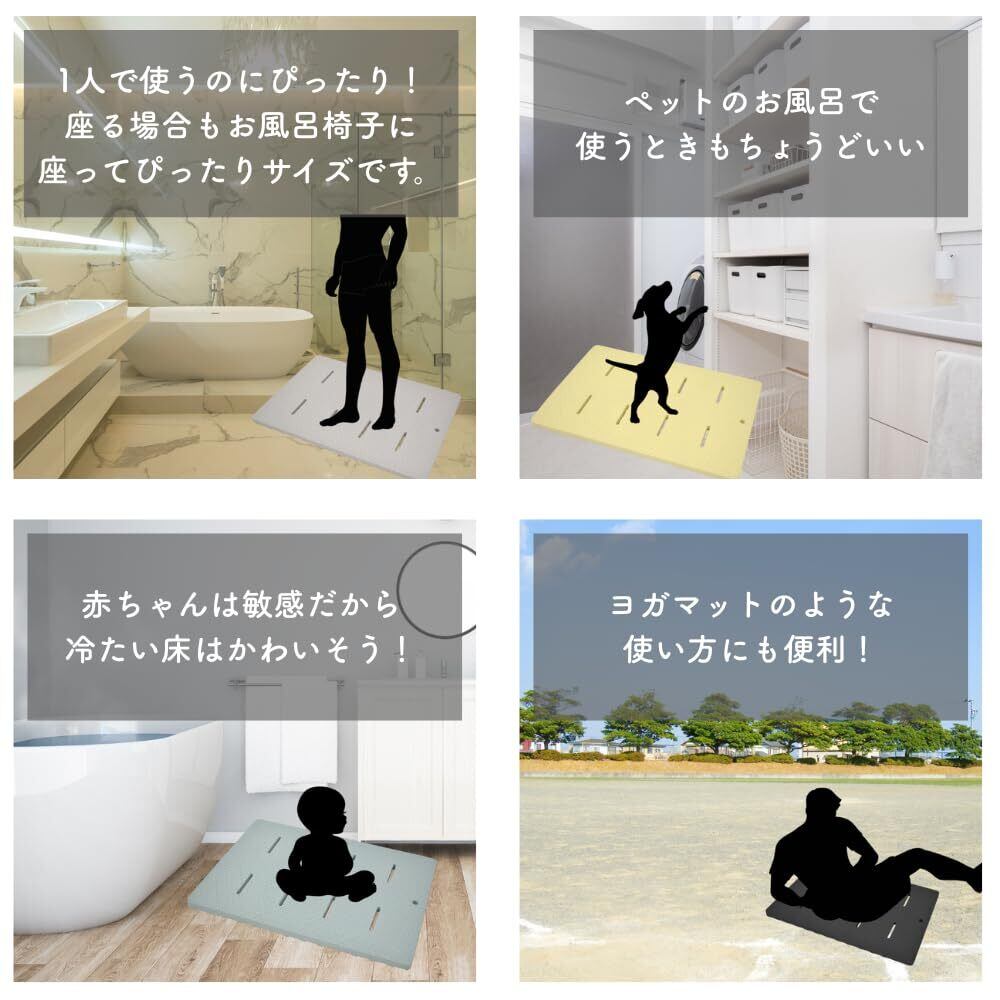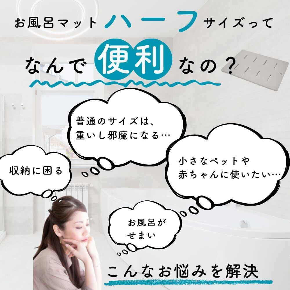 ハーフサイズのコンパクト設計が施されており、【ユニットバス】や【アウトドア】にも便利に使用可能です。その他、【滑り止め バスマット】としての用途もあり、【暖かい足元】を実現するため、【快適なバスルーム環境】を提供します。また、その【軽量】かつ【持ち運びしやすい】デザインは、【キャンプ】や【旅行】にも役立ちます。
