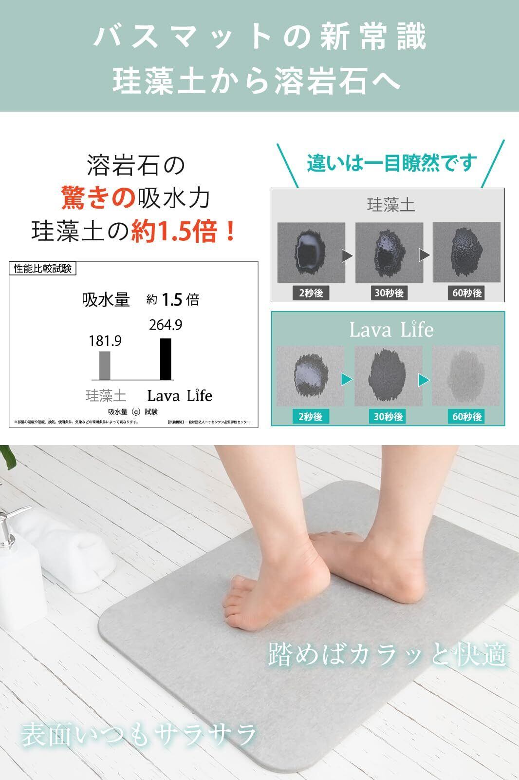 Lava Life 溶岩石バスマット ハードタイプ 珪藻土越える吸水 速乾 (L, グレー) OLA-BML 012-GY