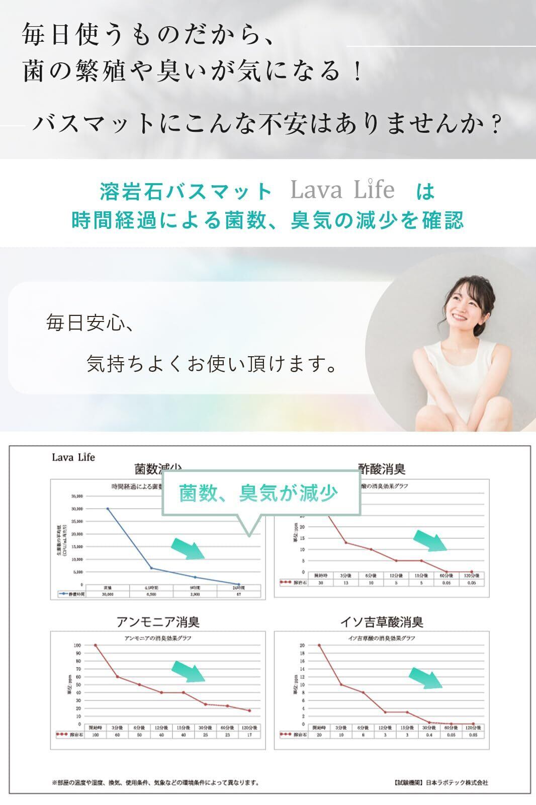 バスマットは次の時代へ。Lava Lifeは次世代の素材”溶岩石(火山岩)”を使ったバスマットです。表面には小さな穴が無数空いており、水分の吸収や放出、消臭の機能に優れています。
