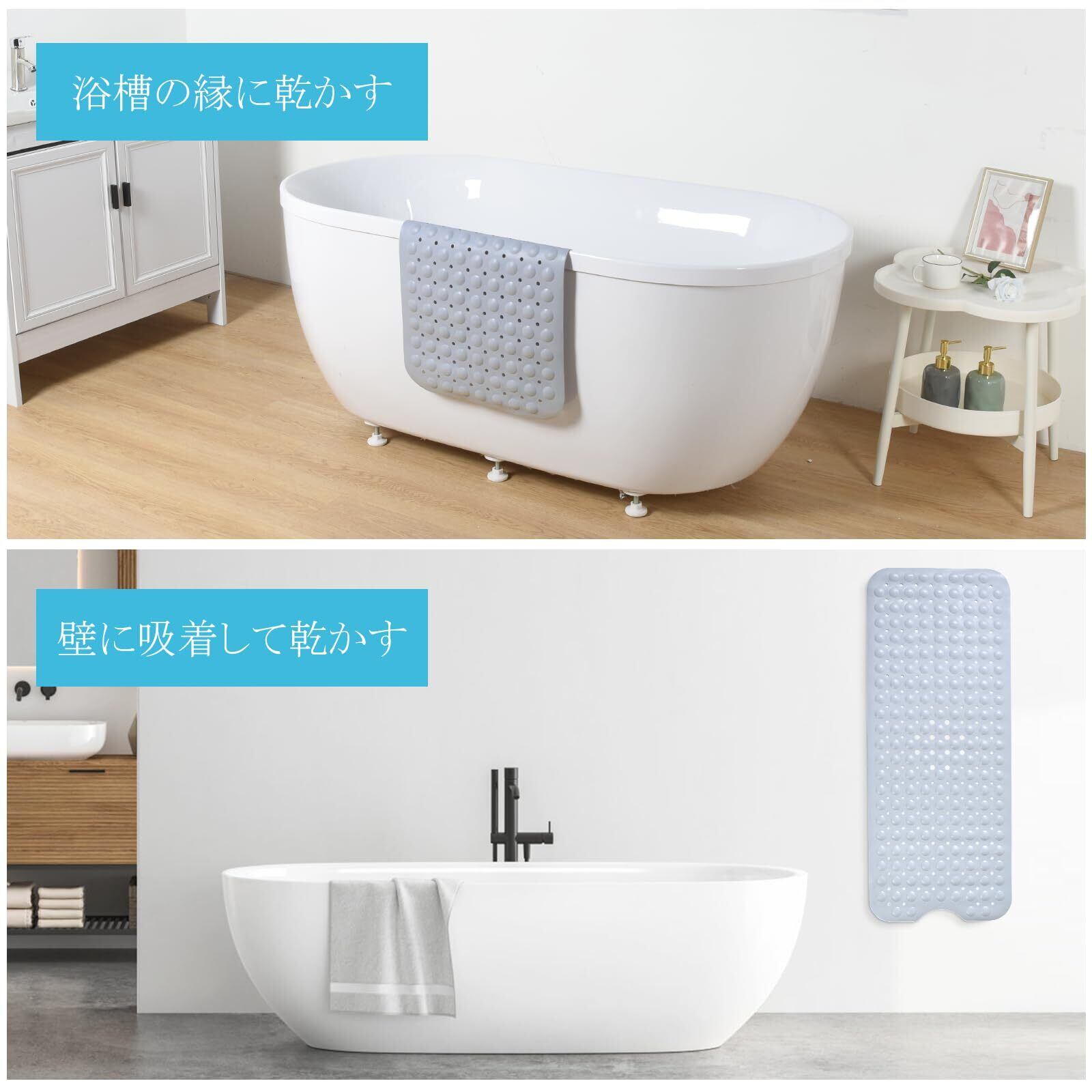 OTraki お風呂 すべり止めマット TPE製 40×100cm 浴槽内滑り止めマット 介護 200個吸盤付き 柔らかい 転倒防止 お風呂 すべり止めマット 防菌 防カビ 老化防止 浴槽マット 浴槽内 滑り止め Bathtub mat 洗い場 出入り口適用 グレー