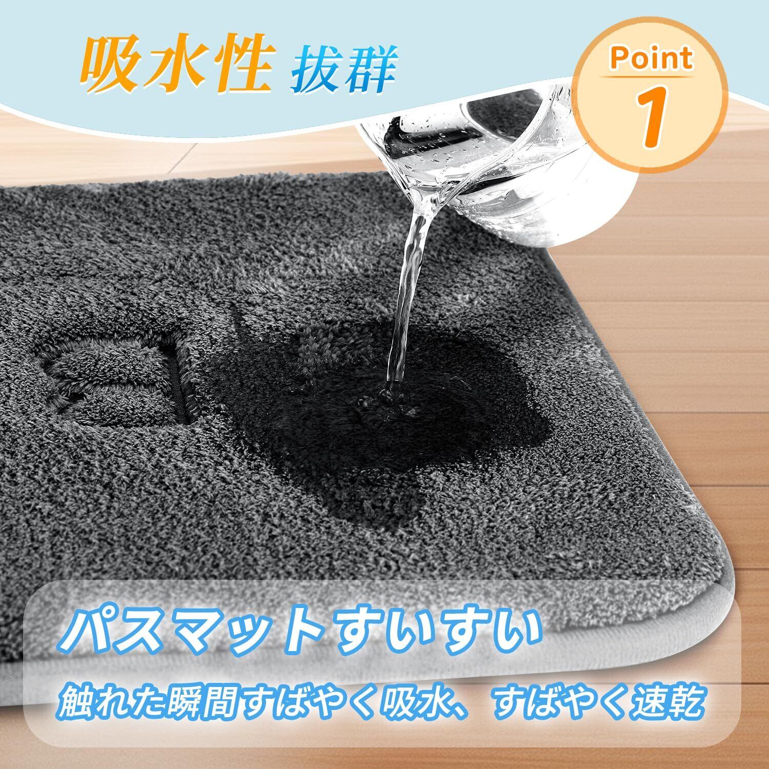ZPOW バスマット 洗える 足ふきマット 速乾 吸水 低反発 北欧 お風呂まっと マイクロファイバー ホテルスタイル やわらか 極細繊 柔らか ソフト 足拭き 快適 お風呂 かわいい 40cm*60cm グレー