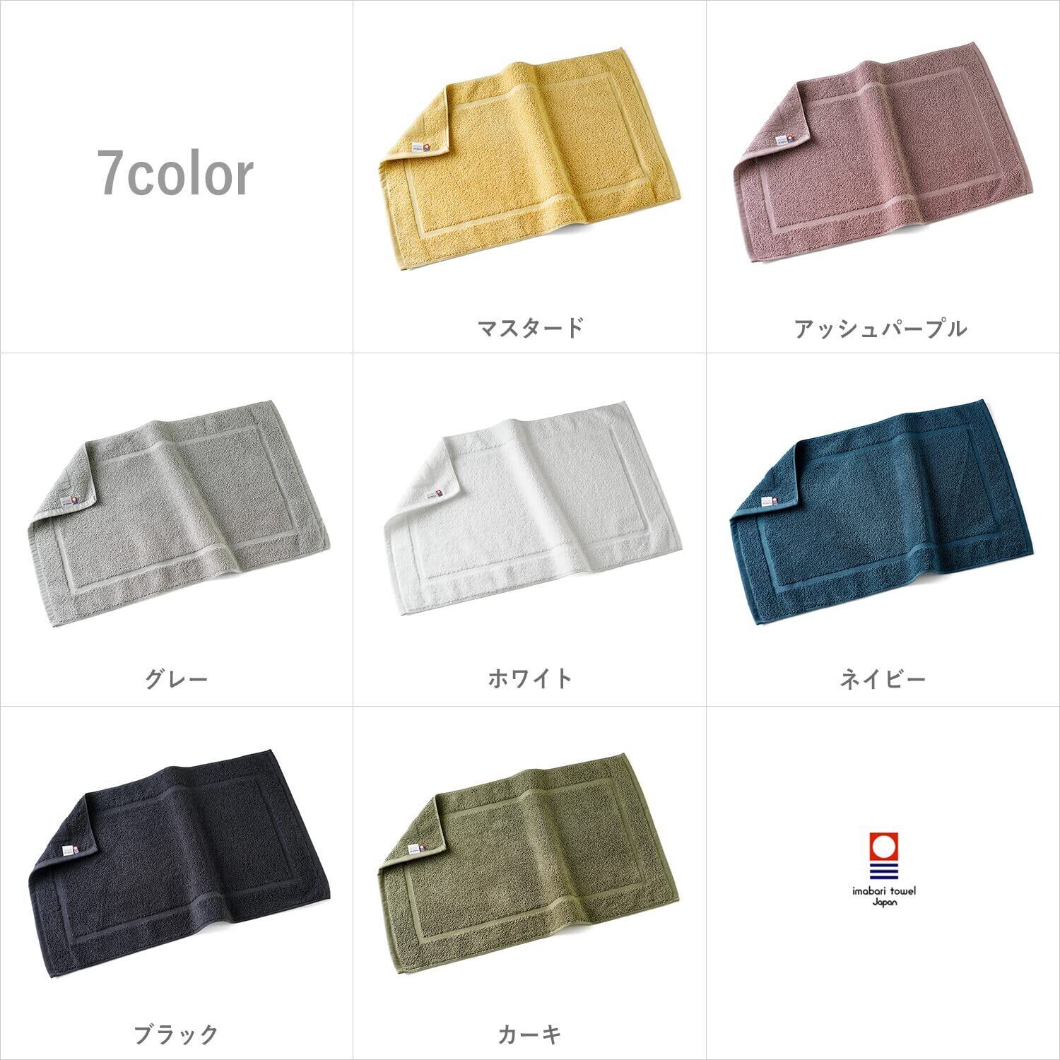 【インテリアに馴染む7色展開】 カラーはホワイト、ブラック、ネイビー、グレー、アッシュパープル、カーキ、マスタードの7色。 ベーシックなカラーの他に落ち着いたアースカラーをご用意しました。同色のバスタオル・フェイスタオル・ハンドタオルの取り扱いもございます。 サイズ:約69cm×43cm 重さ:約325g(1枚あたり) 生産国:日本(今治) 素材:コットン(綿)100%