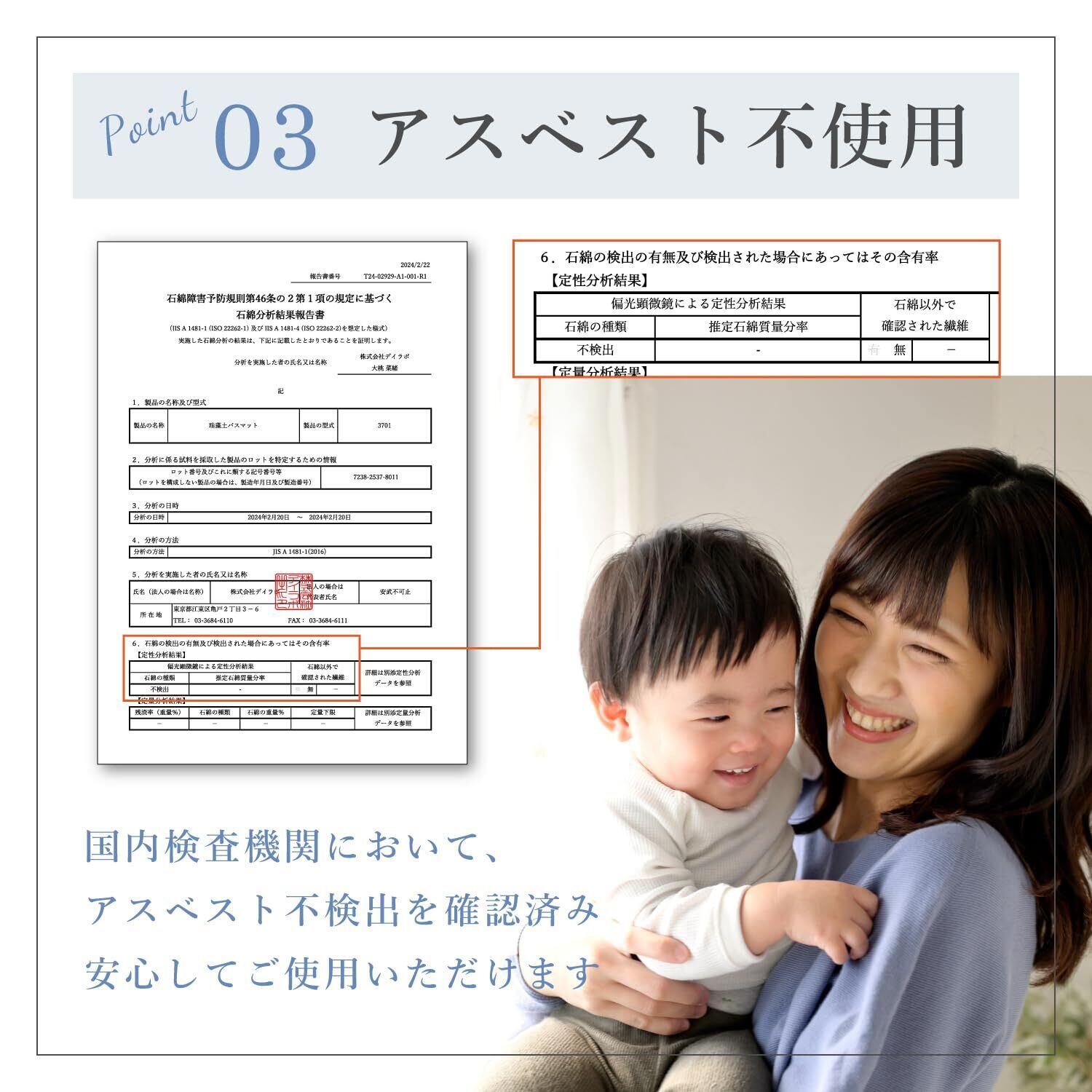 【安心】で販売している珪藻土バスマットソフトは、アスベストなどの有害物質は含有されていません。安心してご使用いただけます。万が一製品が傷あるや破損、不良品などの場合は、ぜひのカスタマーサービスセンターにご連絡ください。ご満足するよう商品交換・再送、返品・返金などの対応をさせて頂きます。