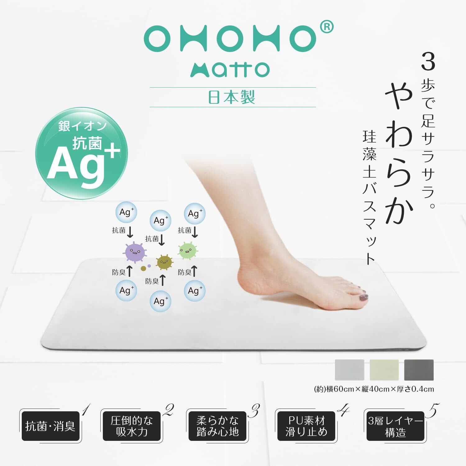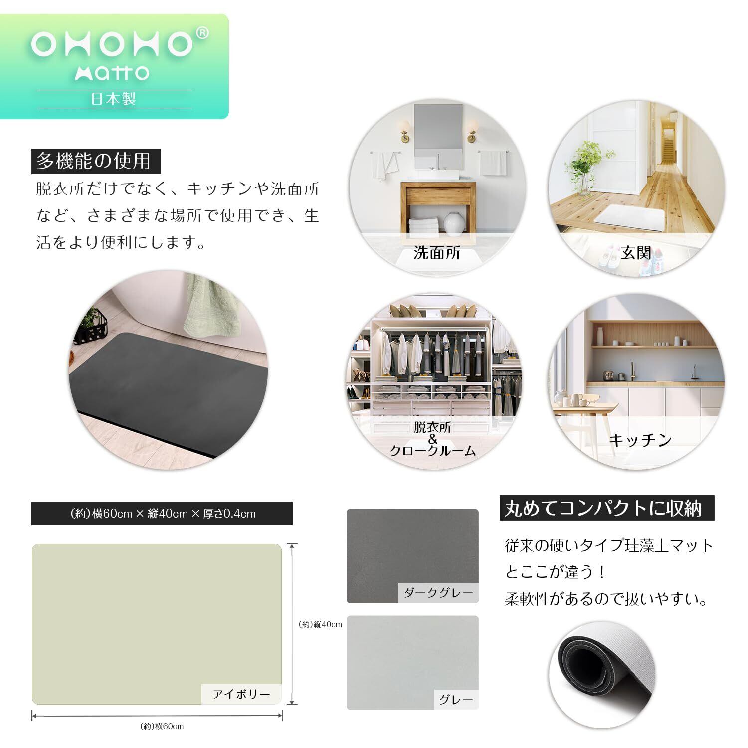 バスマット 珪藻土 日本製 洗える 速乾 抗菌銀イオン入 (ダークグレー, 60cm×40cm)