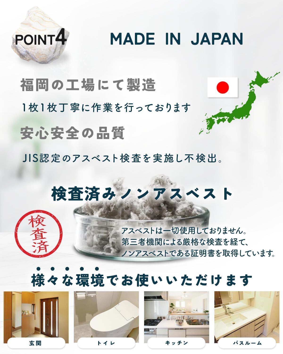 【日本製】福岡にある工場で徹底した品質管理の基に製造を行っております。 さらに、衛生面に配慮した環境下にて再度目視で検品を行い、安心安全の珪藻土マットをお客様に提供しております。
