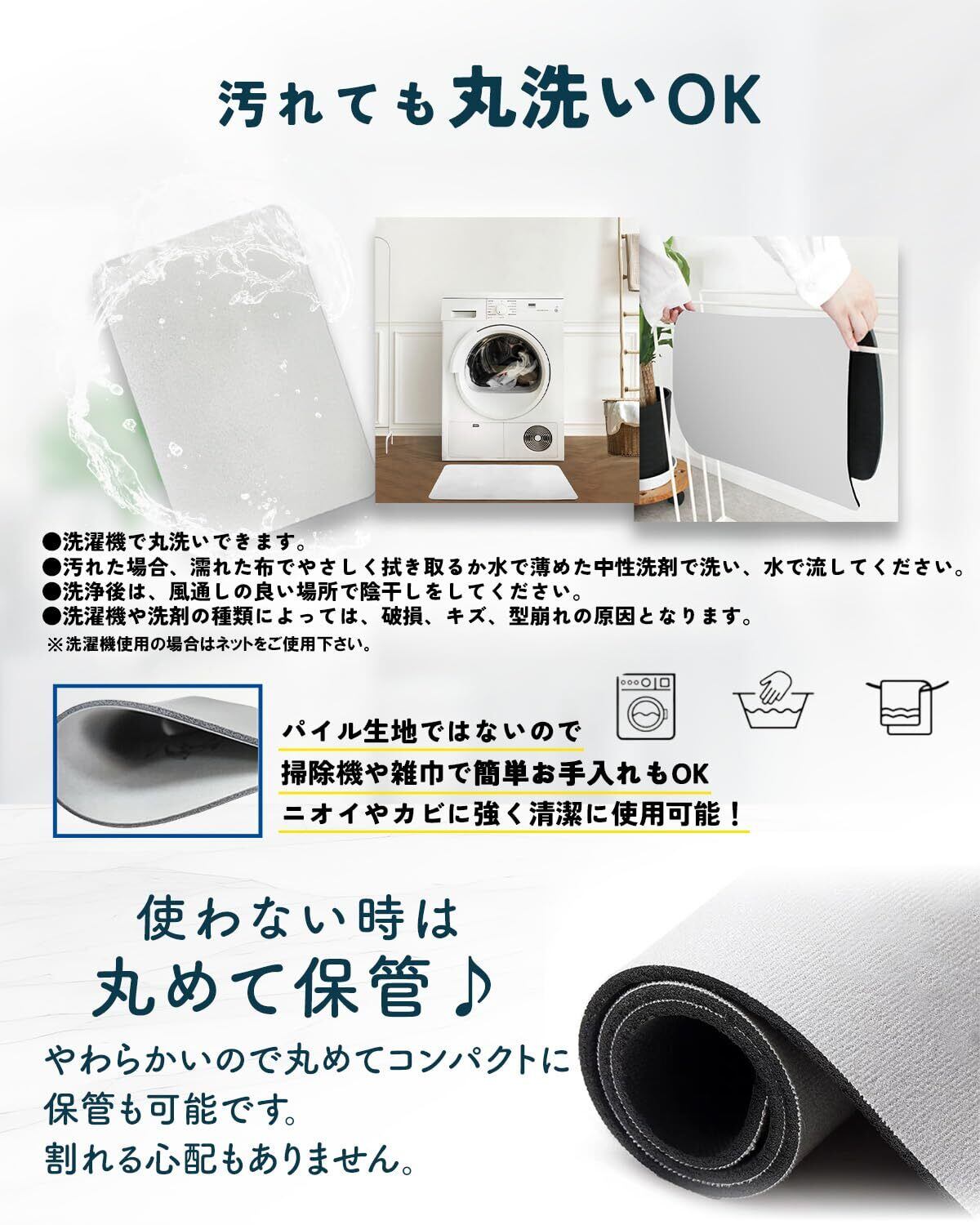 【滑り止め加工】マット裏面にはPU素材を使用しておりしっかり吸着します。また接地面の傷防止にも効果的です。