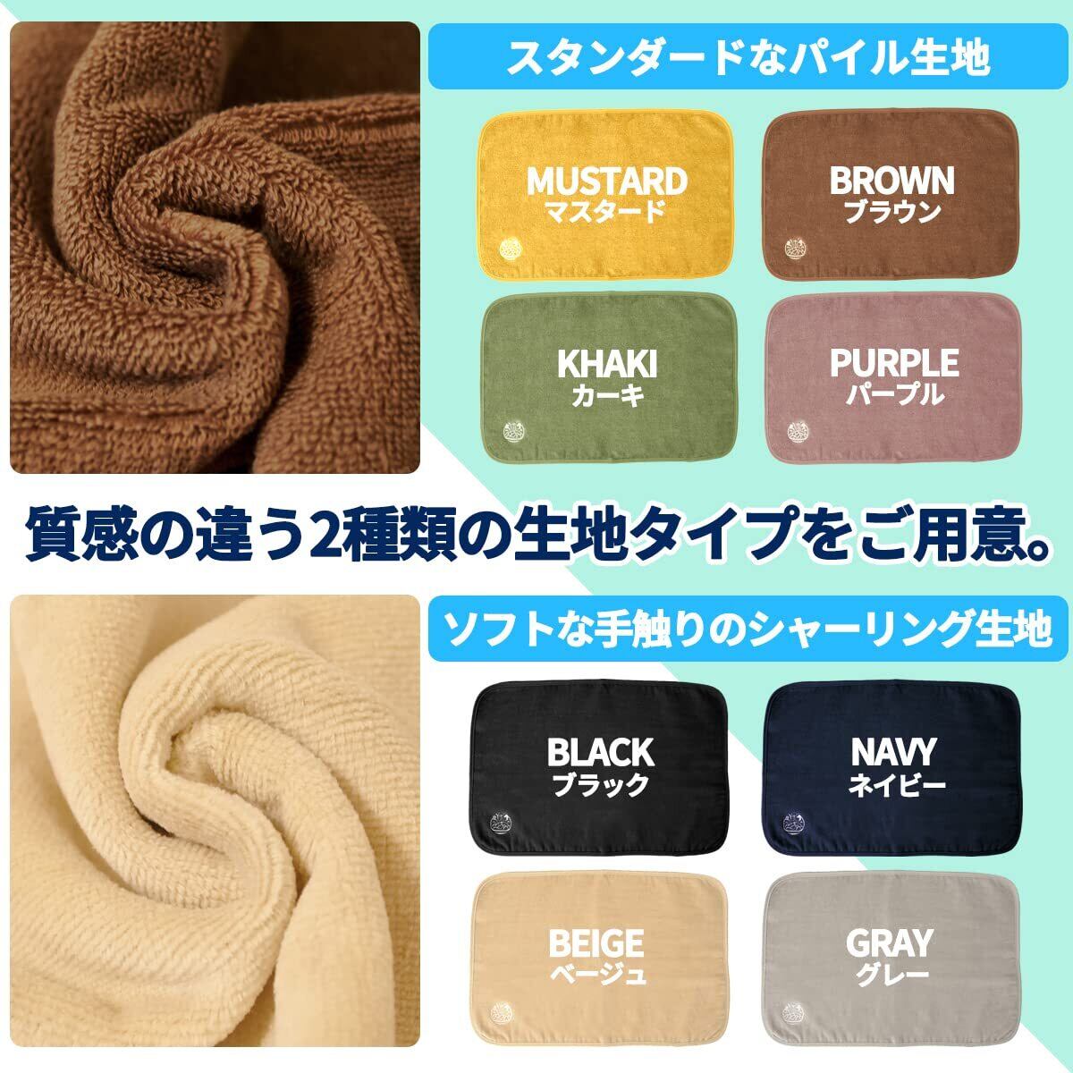 【豊富なカラーバリエーション】シャーリング地はブラック、ネイビー、ベージュ、グレーから。パイル地はマスタード、ブラウン、カーキ、パープルからお選び頂けます。