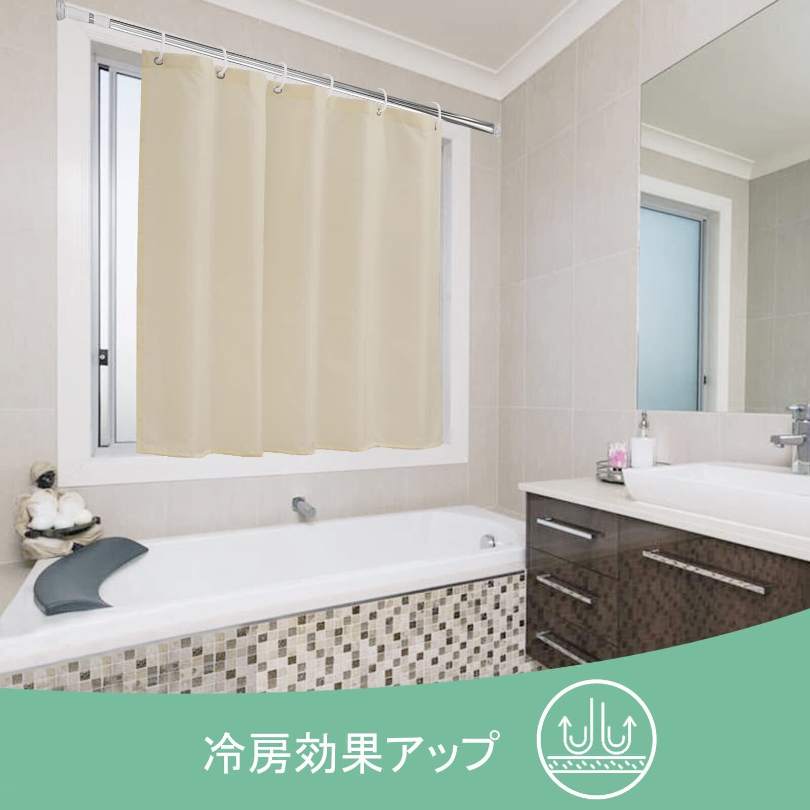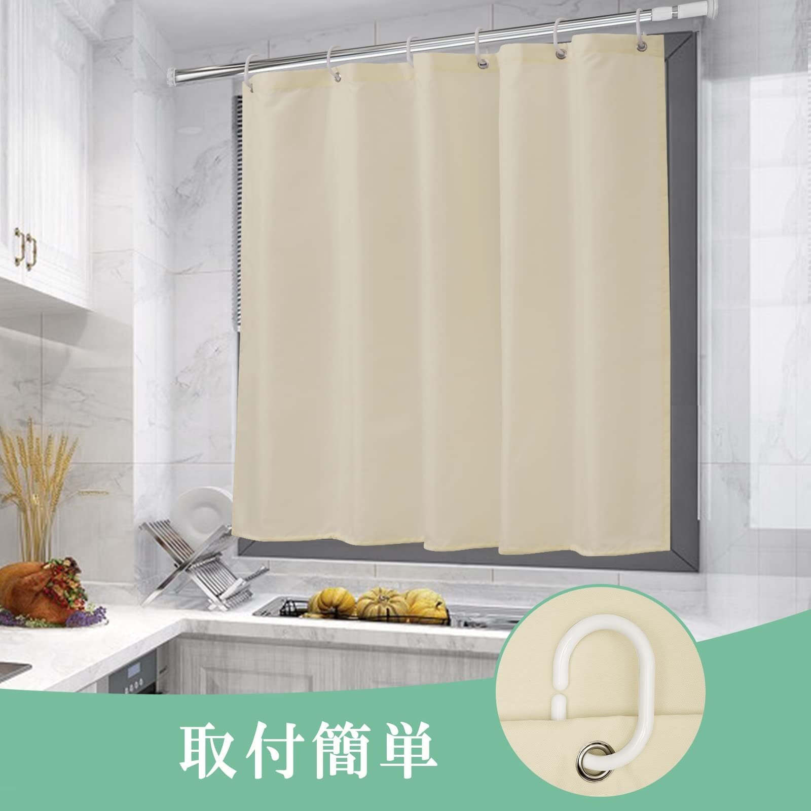 AooHome シャワーカーテン 小窓 目隠し 防水 短め 防カビ ユニットバス 浴室窓 お風呂窓 80cm丈 カフェカーテン 間仕切り 無地 リング付き 洗濯可 取付簡単 ベージュ