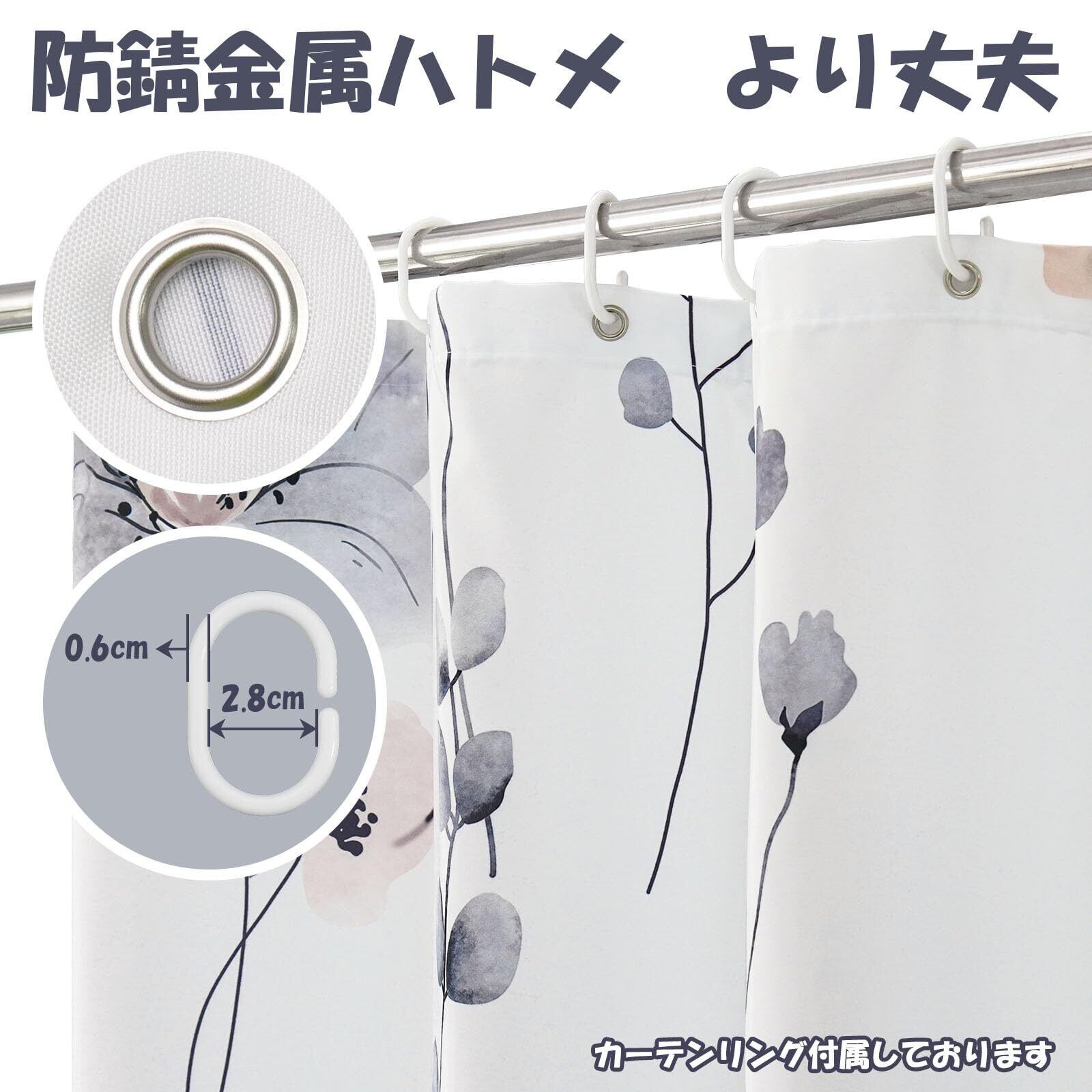 AooHome お風呂小窓カーテン 浴室窓カーテン90cm丈 140cm幅 防水防カビ 防水防カビ 目隠し 断熱 シャワーカーテン 速乾 間仕切り 高密度生地 ユニットバス 浴室 花柄 リング付き 取付簡単 グレー
