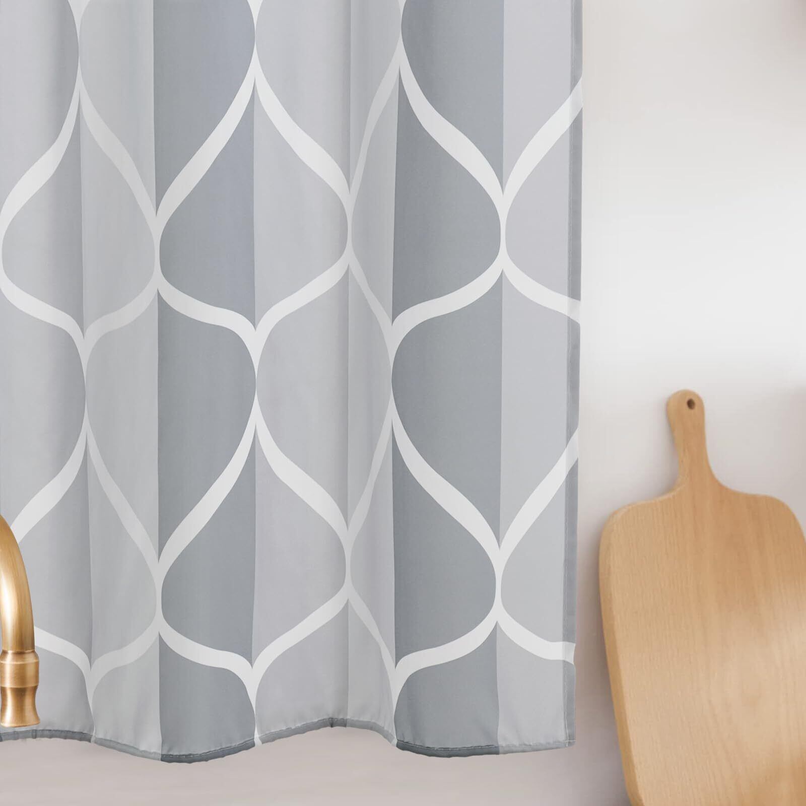 AooHome シャワーカーテン 小窓 目隠し 遮光 防水 短め 防カビ ユニットバス 浴室窓 お風呂窓 70cm丈 カフェカーテン チェック柄 幾何学パターン 100cm幅 間仕切り リング付き 洗濯可 取付簡単