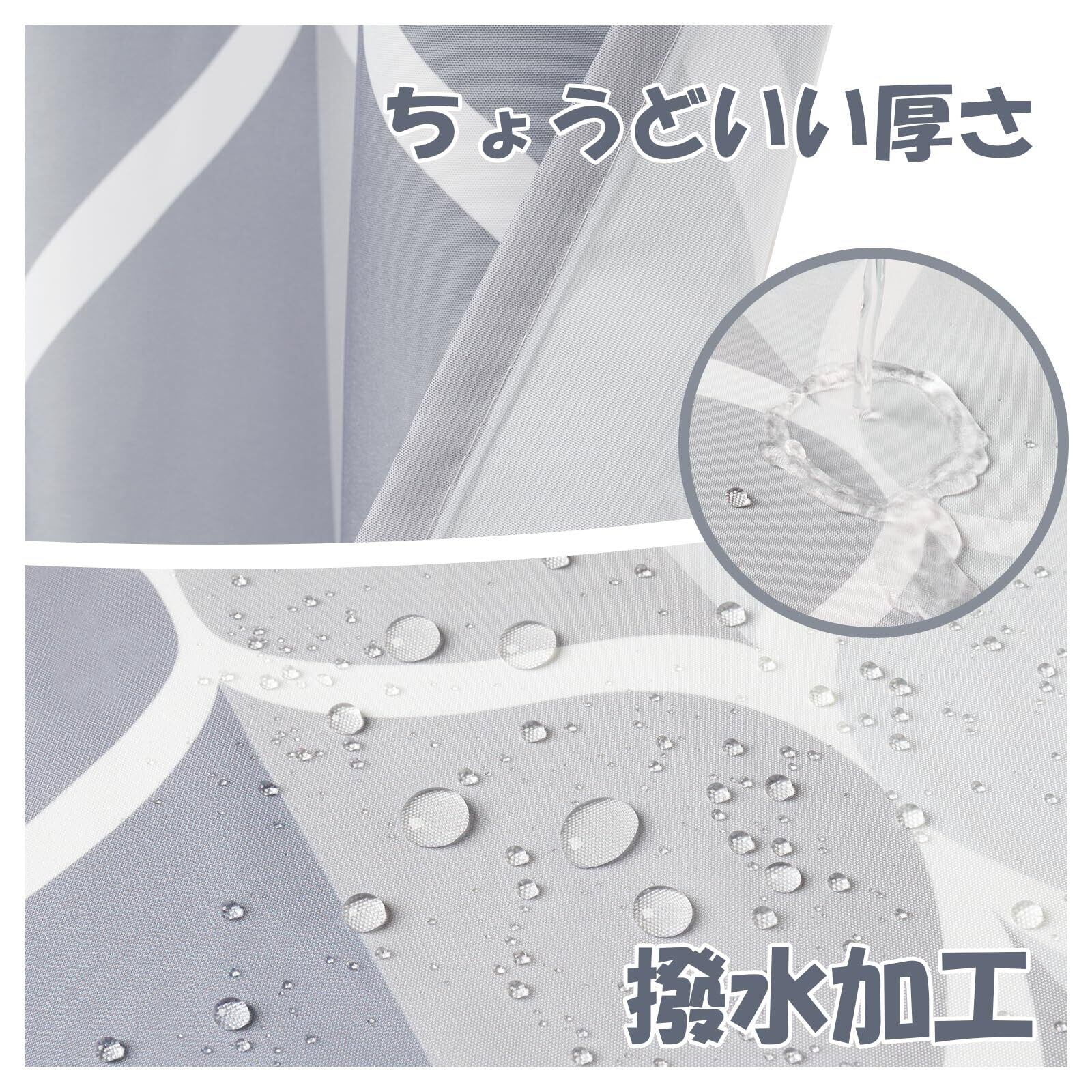 【撥水加工・防カビ素材使用】小窓カーテン表に防水コーディング付き加工でしっかりと水を弾いてくれます、防カビ素材で作られ、バスルームがいつも清潔に使います。