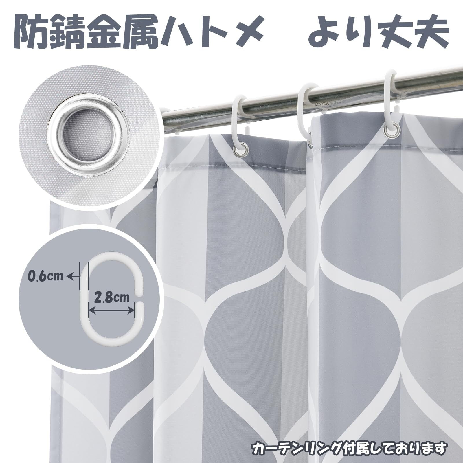 【取付簡単】加厚カーテンリング付きなので突っ張りポールに引っかけるだけで、簡単に取り付けます。浴室・キッチン・その他の小窓に適応します。ご購入日より12ヶ月安心を提供させていただき、ご安心ください。弊店はお客様満足度100%を目指して頑張ります。
