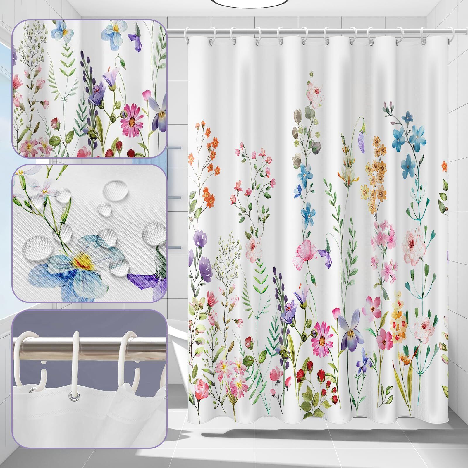 【優れた品質】シャワーカーテンはポリエステル製で柔らかくて手触りよく、耐久性があり軽量な素材です。美しい花柄で、自然に近い気があります