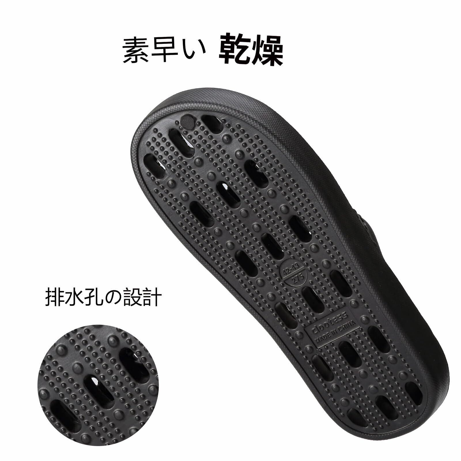 【プロ級の防滑設計】滑らないサンダル、底部に特殊凹凸パターン採用、浴室や脱衣所の水はけを促進し、滑りやすい場所でも安定した歩行をサポート。