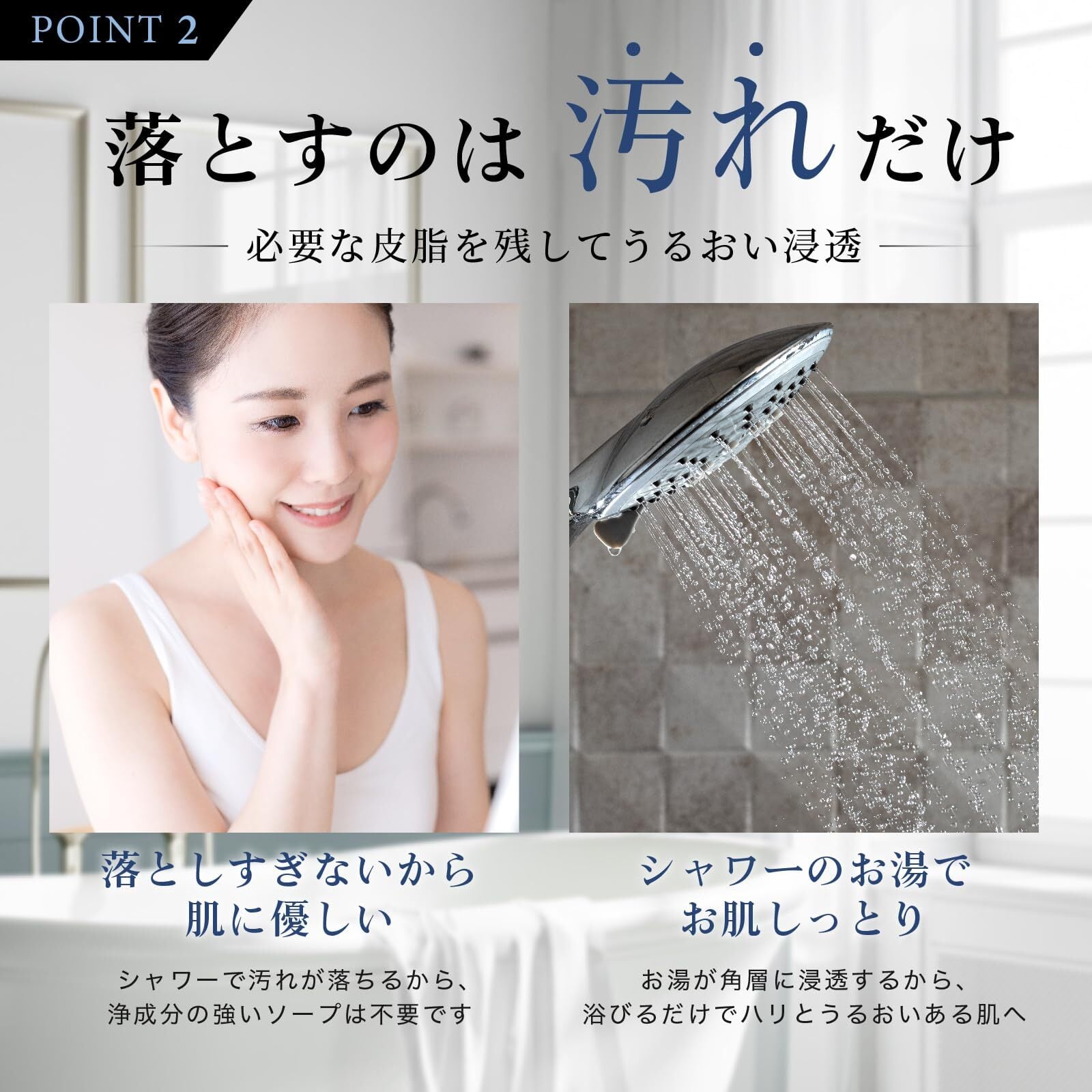 商品特長 塩素除去、汚れ除去、水垢の成長阻害