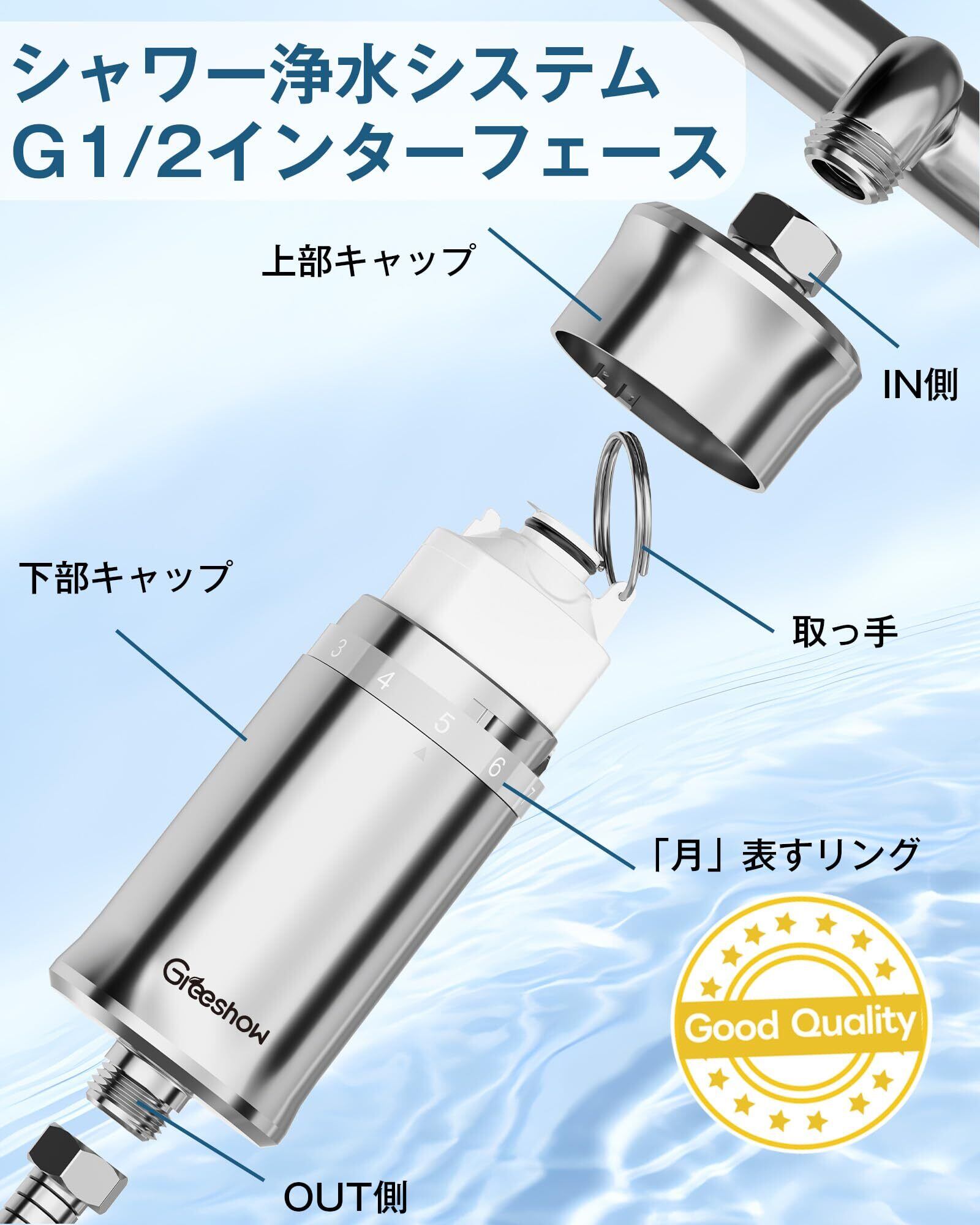 Greeshow GS-2835 浄水 カートリッジ 塩素除去 シャワー用浄水器 交換用フィルター