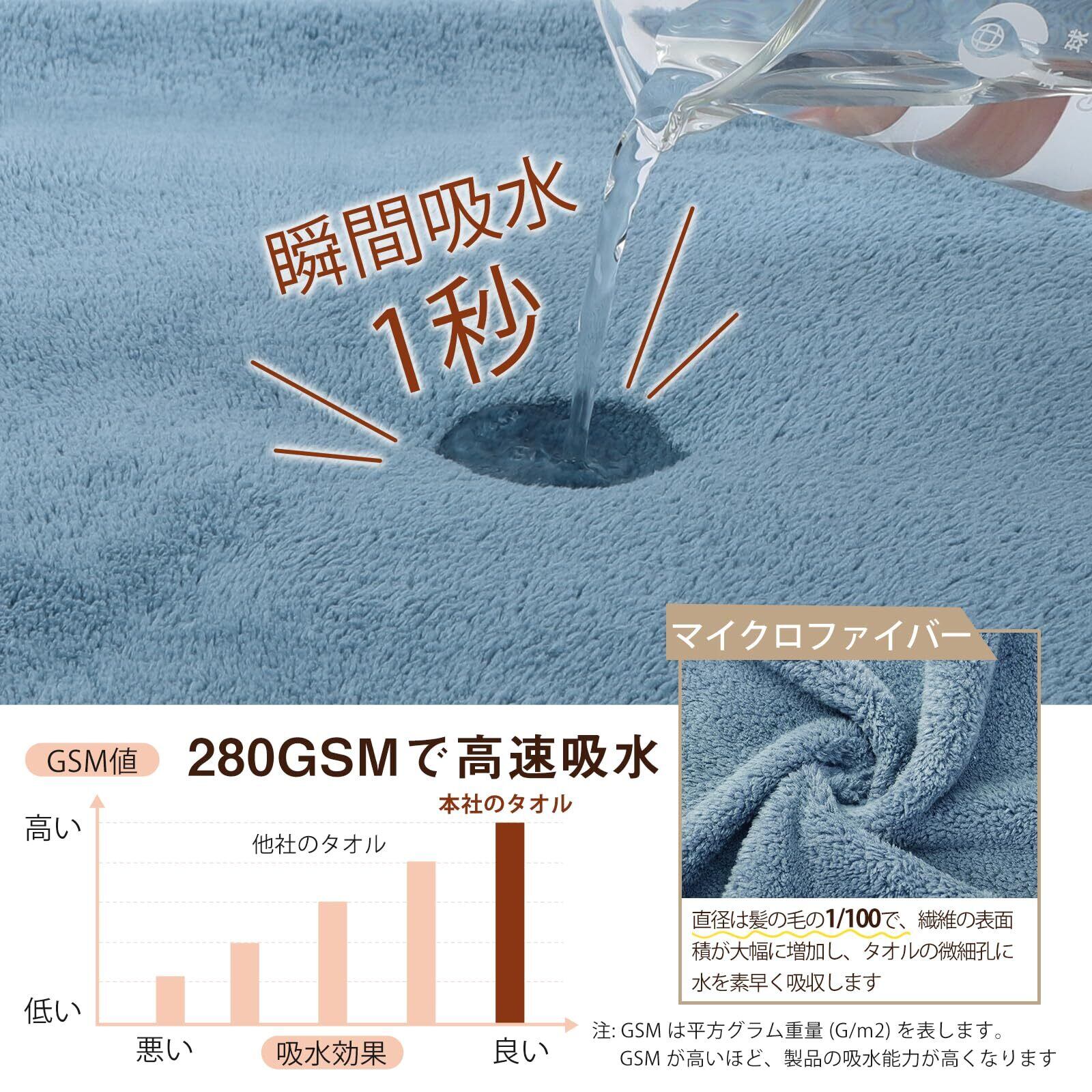 ▶【280GSM・吸水性抜群】マイクロファイバーの直径は髪の毛の1/100で、繊維の表面積が大幅に増加し、より効果的に水分を吸収して閉じ込めることができます。ロングヘアでも強くこする必要はなく、髪や肌などの湿った部分に軽く当てて水分を吸収させるだけです。注: GSM は平方グラム重量 (G/m2) を表します。GSM が高いほど、製品の吸水能力が高くなります。