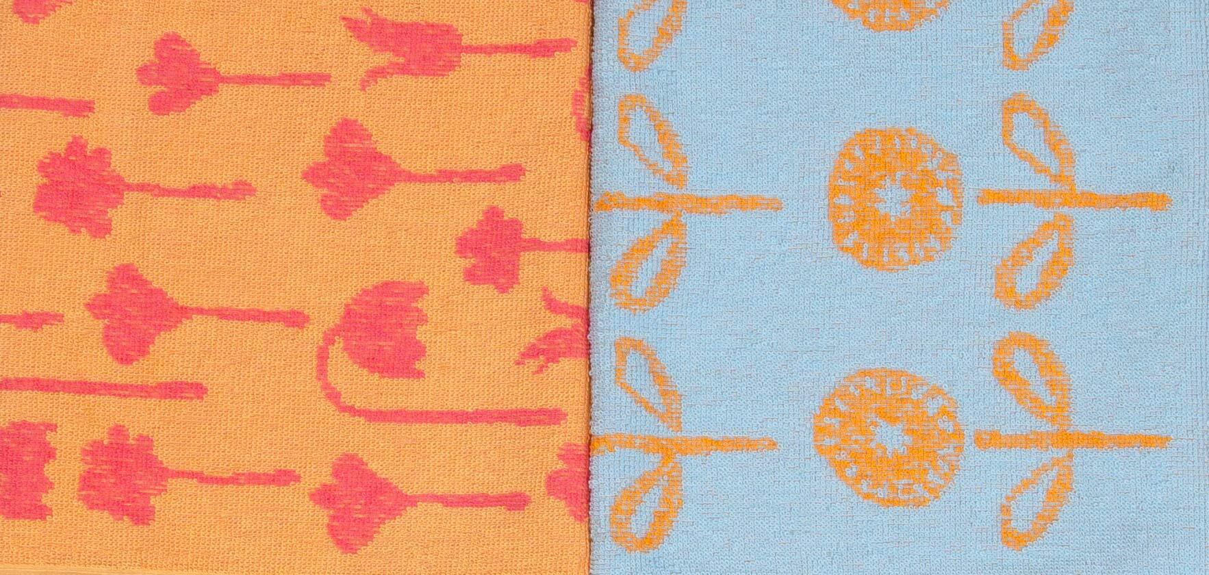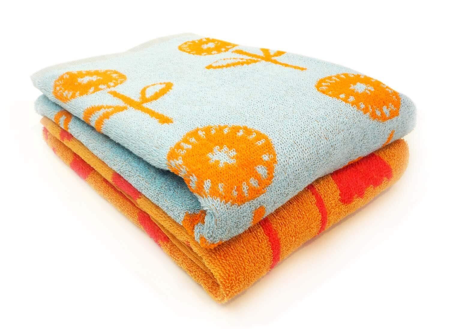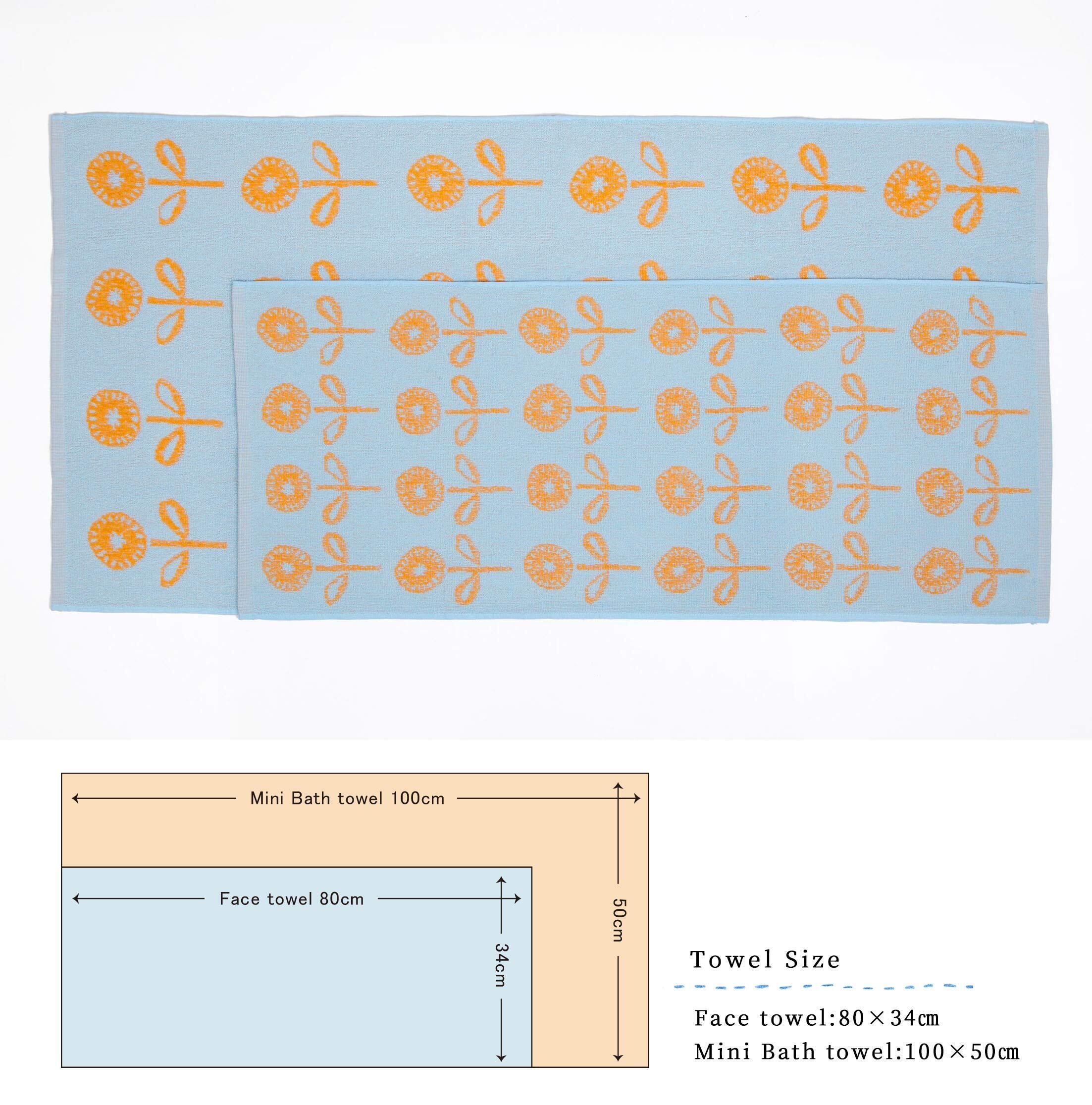 Kosugizen ミニバスタオル 北欧調ジャガード フラワー 2色(2柄)各1枚入 50×100㎝ 小さなサイズのバスタオル デイリーユース 2枚セット SV-461-2