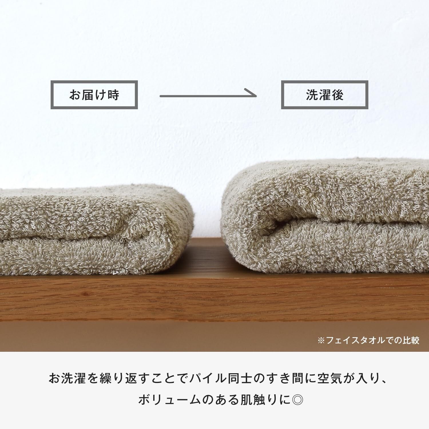 【使うたびにやわらかく】お洗濯することでパイルとパイルの間に空気が入り込み、ふわっと軽やかな手触りに。手を拭いた瞬間にタオルの良さを感じてもらえるような肌触りに仕上げました。