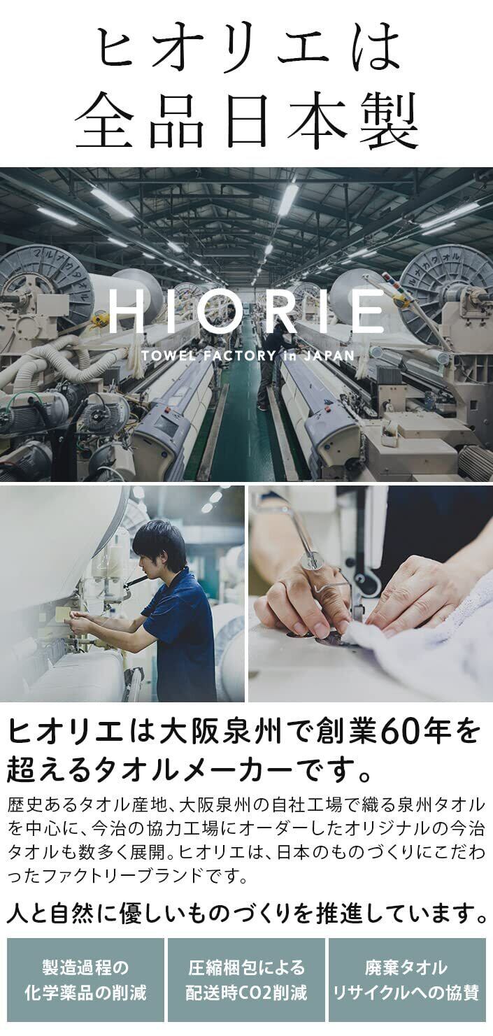 【日本製 泉州タオル】大阪泉佐野工場で織り、和泉山脈の天然水で洗い上げた泉州タオルです。タオルを織り上げてから水洗いや染色を行う泉州タオル独自の後晒製法により、使い始めから柔らかな肌触りと吸水性の良さを感じていただけます。外国製タオルが主流の昨今、身近なものだからこそこだわりたい日本製タオルです。