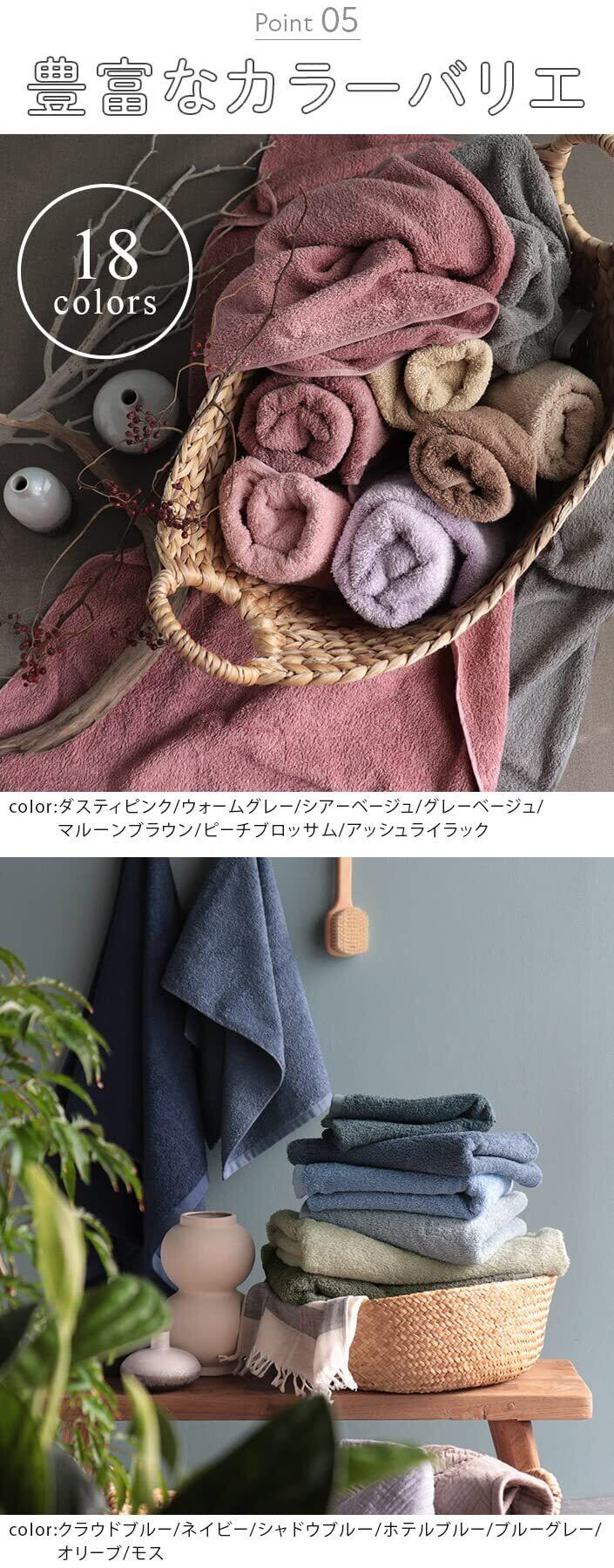 【ハンドタオル 2枚セット】生産地:日本(泉州タオル) 素材:綿100% サイズ・重さ:約40×40cm・約72g カラー:オフホワイト、シアベージュ、モカ、マルーンブラウン、グレーベージュ、ウォームグレー、ライトグレー、ダスティピンク、ピーチブロッサム、ラベンダー、アッシュライラック、ブルーグレー、ホテルブルー、シャドウブルー、ネイビー、クラウドブルー、モス、オリーブ セット内容:ハンドタオル 同色2枚 ※ヘムには便利なネームタグの引っかけ付き