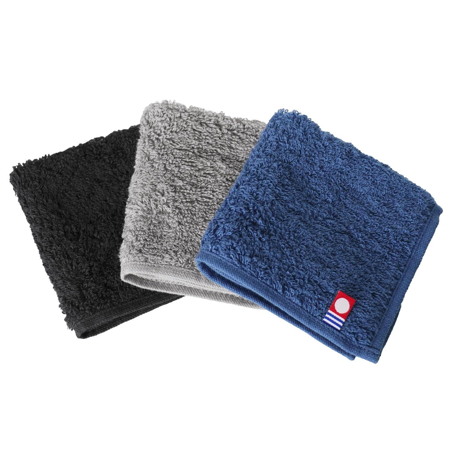[oruta] 今治タオル 認定 ハンカチ 3枚セット プレーン タオルハンカチ 20×20cm 小さめ ハンドタオル コンパクト 綿100% 日本製(ブラック・ネイビー・グレー)