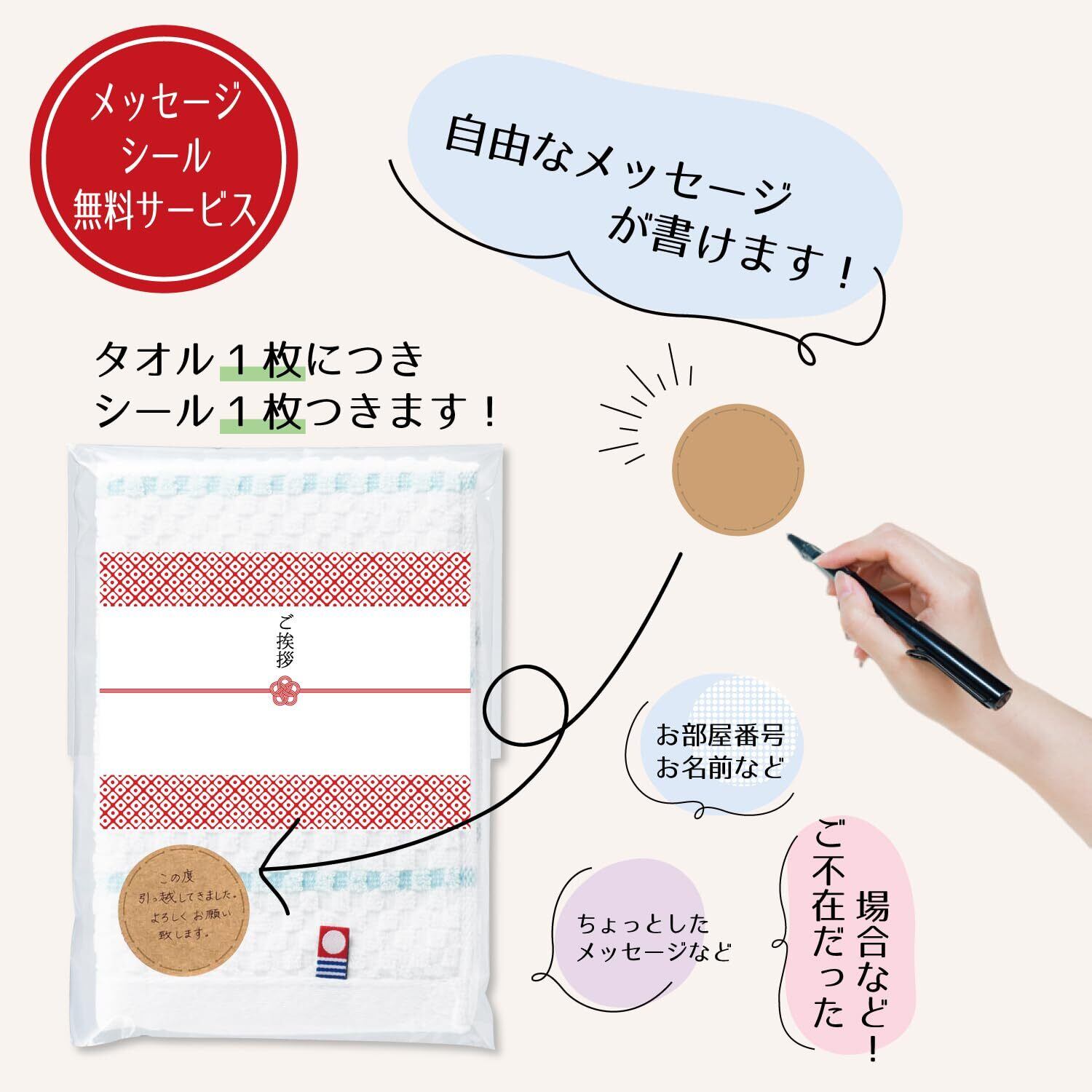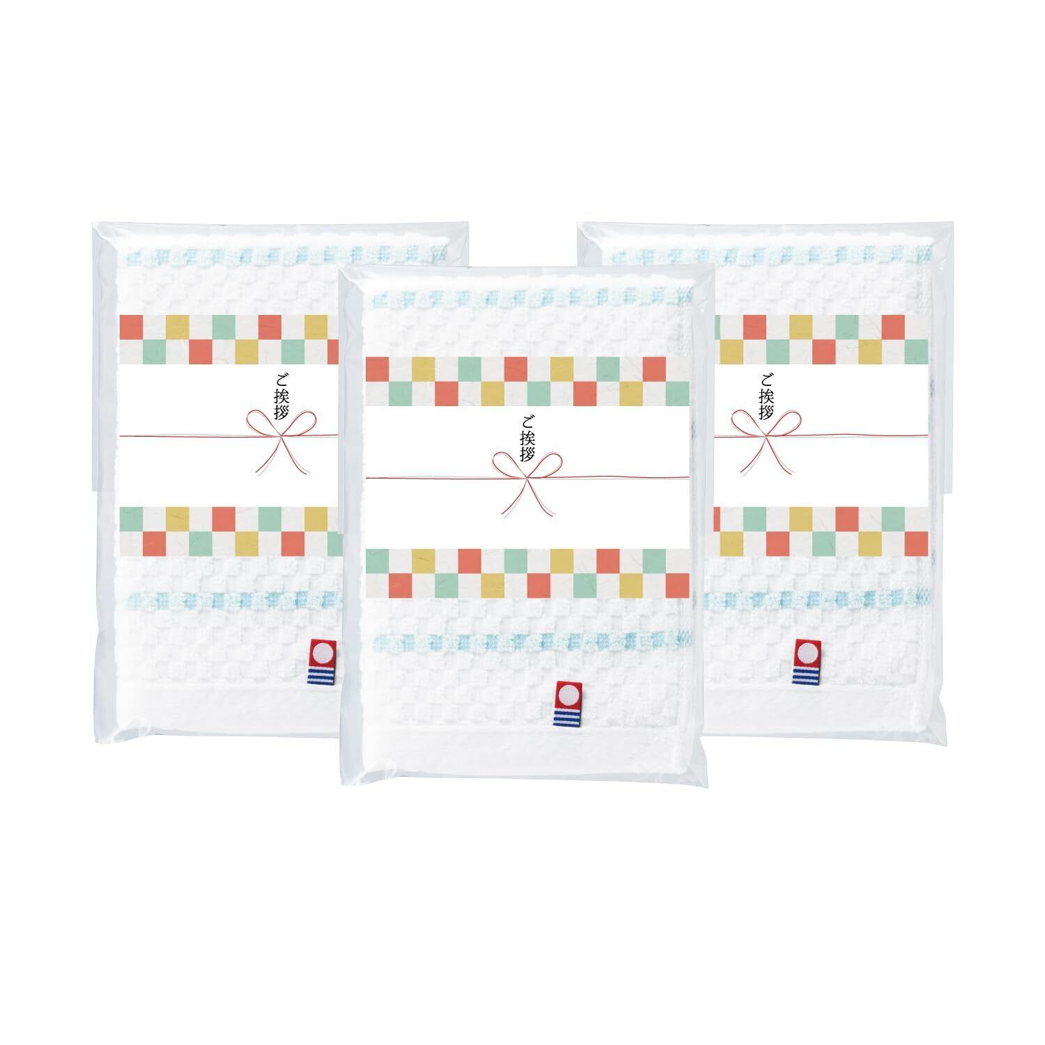 引っ越し 挨拶 粗品 タオル 今治 ポストに入る のし風シール付き 手提げ付き かわいい おしゃれ (3個, 市松のしシール)