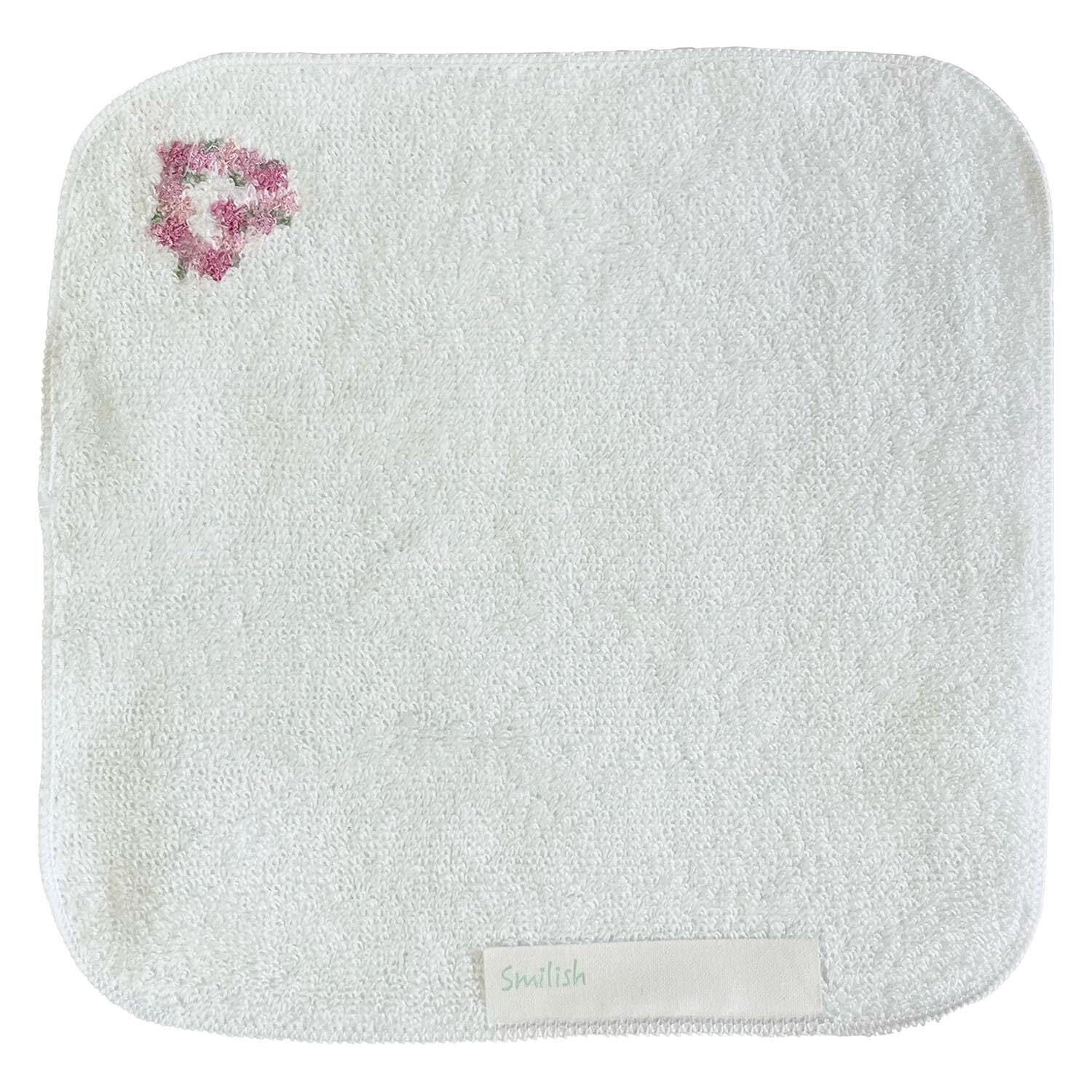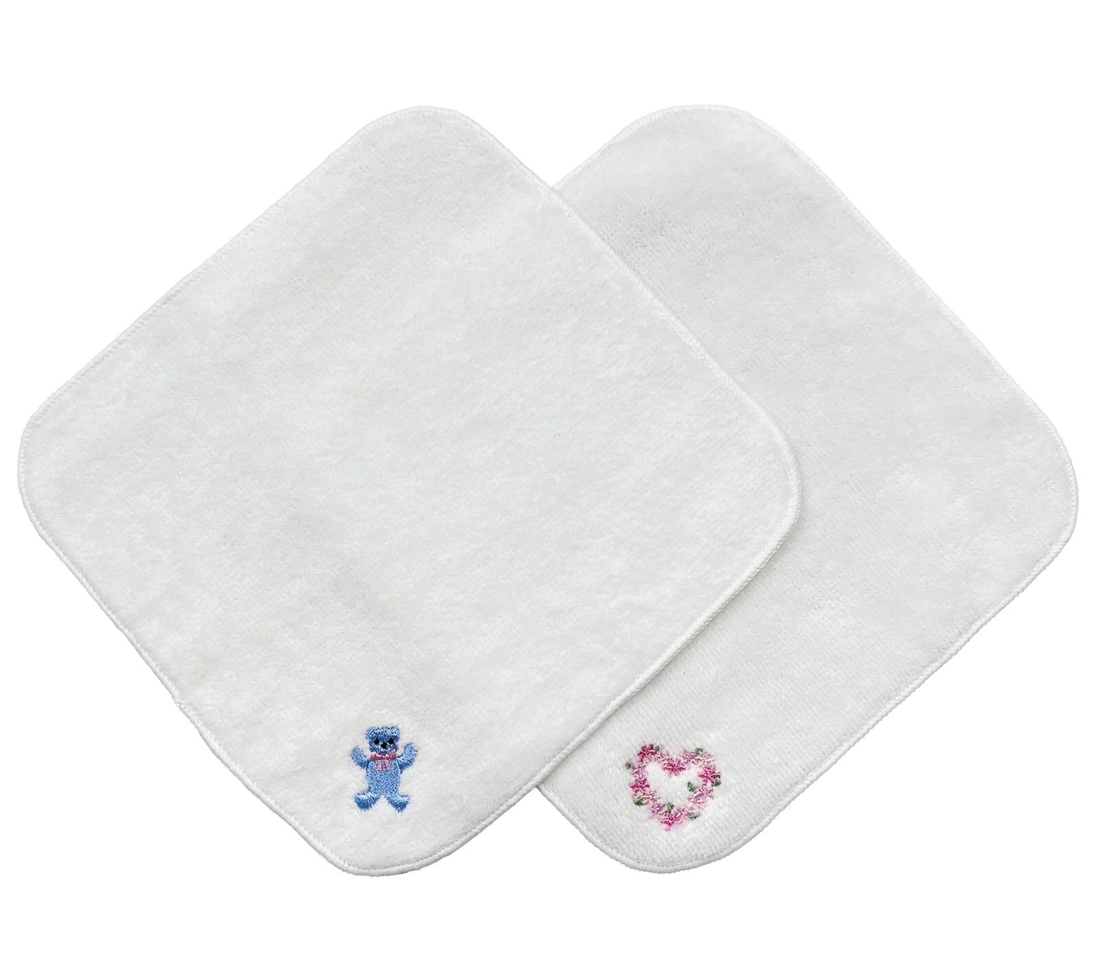 今治タオル×スマイリッシュ ミニタオルハンカチガールズ2枚セット・名入れスペース付(くま&フラワーハート)