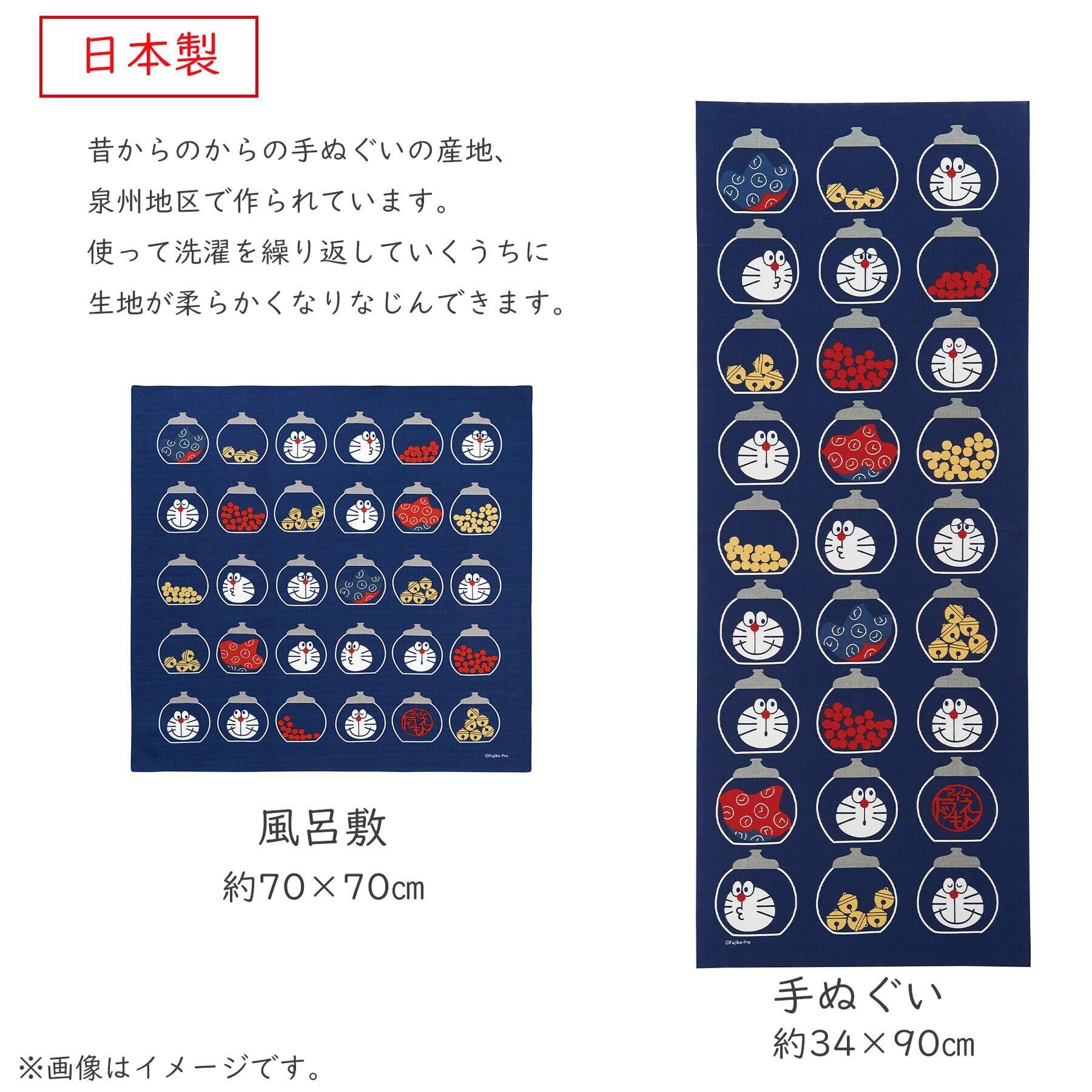 手を拭いたり、額縁に入れて絵のようにお部屋に飾ったり、用途多様です。 和風なドラえもんを手ぬぐいにプリントしました。 昔からのからの手ぬぐいの産地、泉州地区で作られています。使って洗濯を繰り返していくうちに生地が柔らかくなりなじんできます。