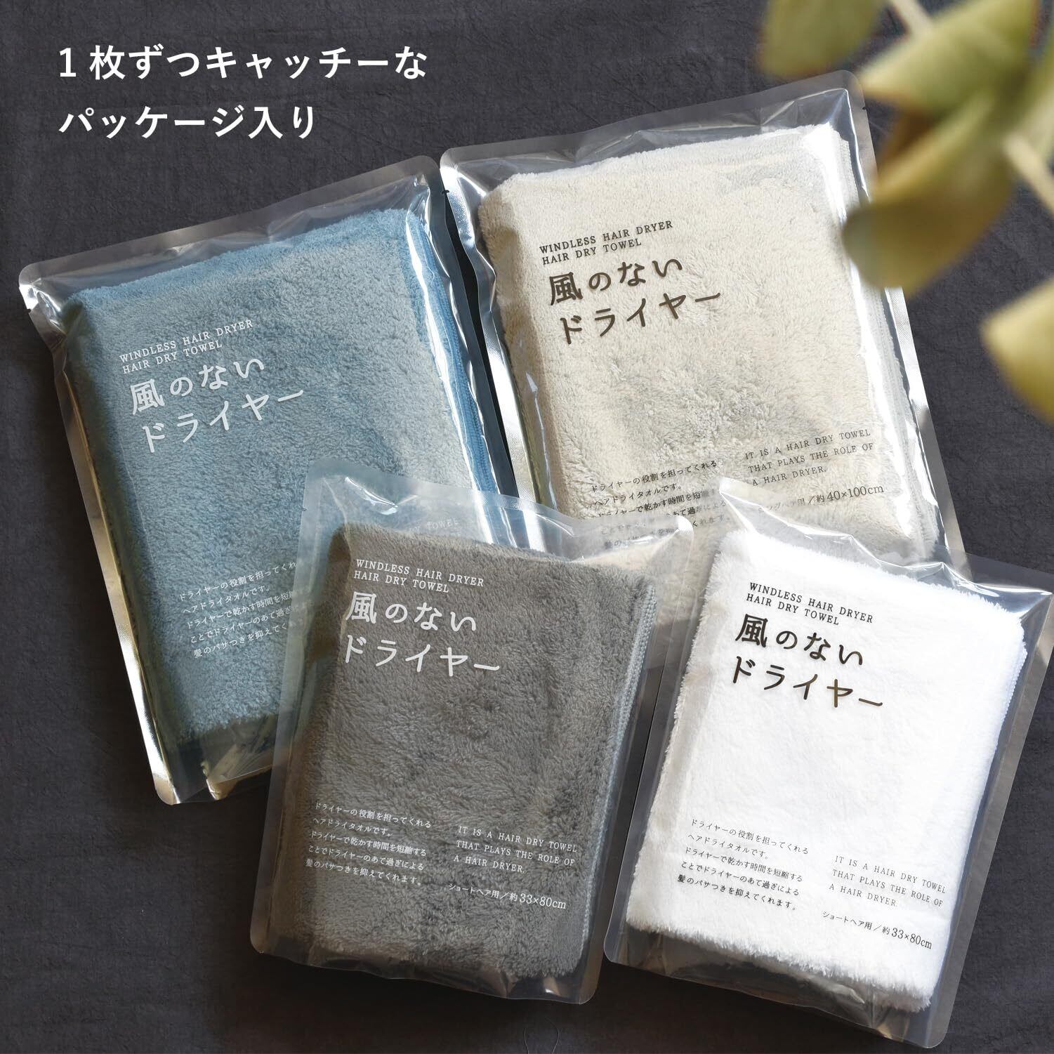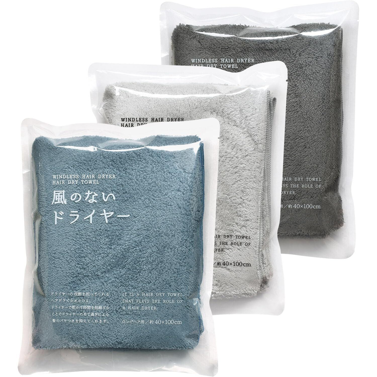 ブルーム ヘアドライタオル 3枚セット 風のないドライヤー ロングヘア用 約40×100cm 吸水 速乾 部屋干し マイクロファイバー ヘアタオル 個包装 (アソートA)