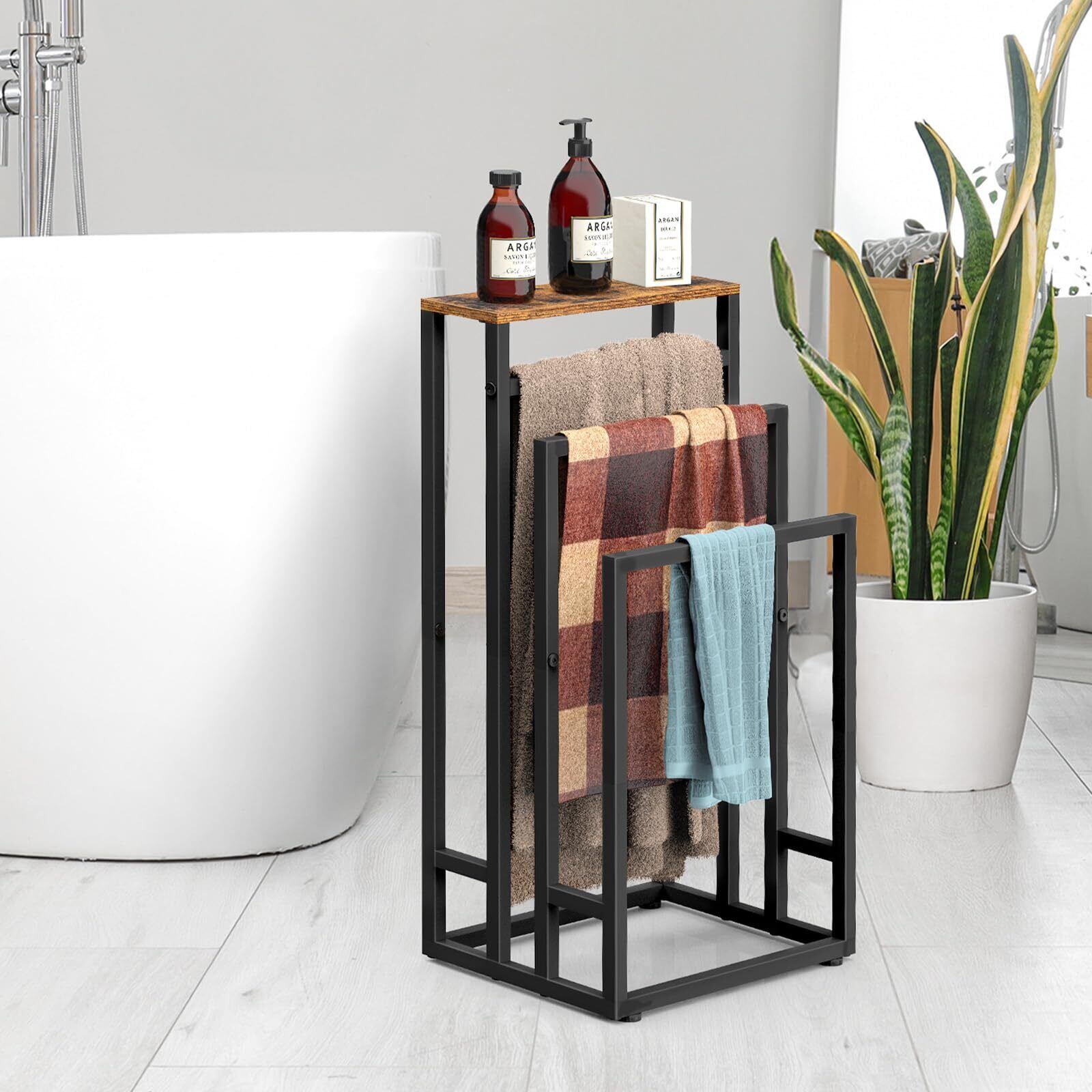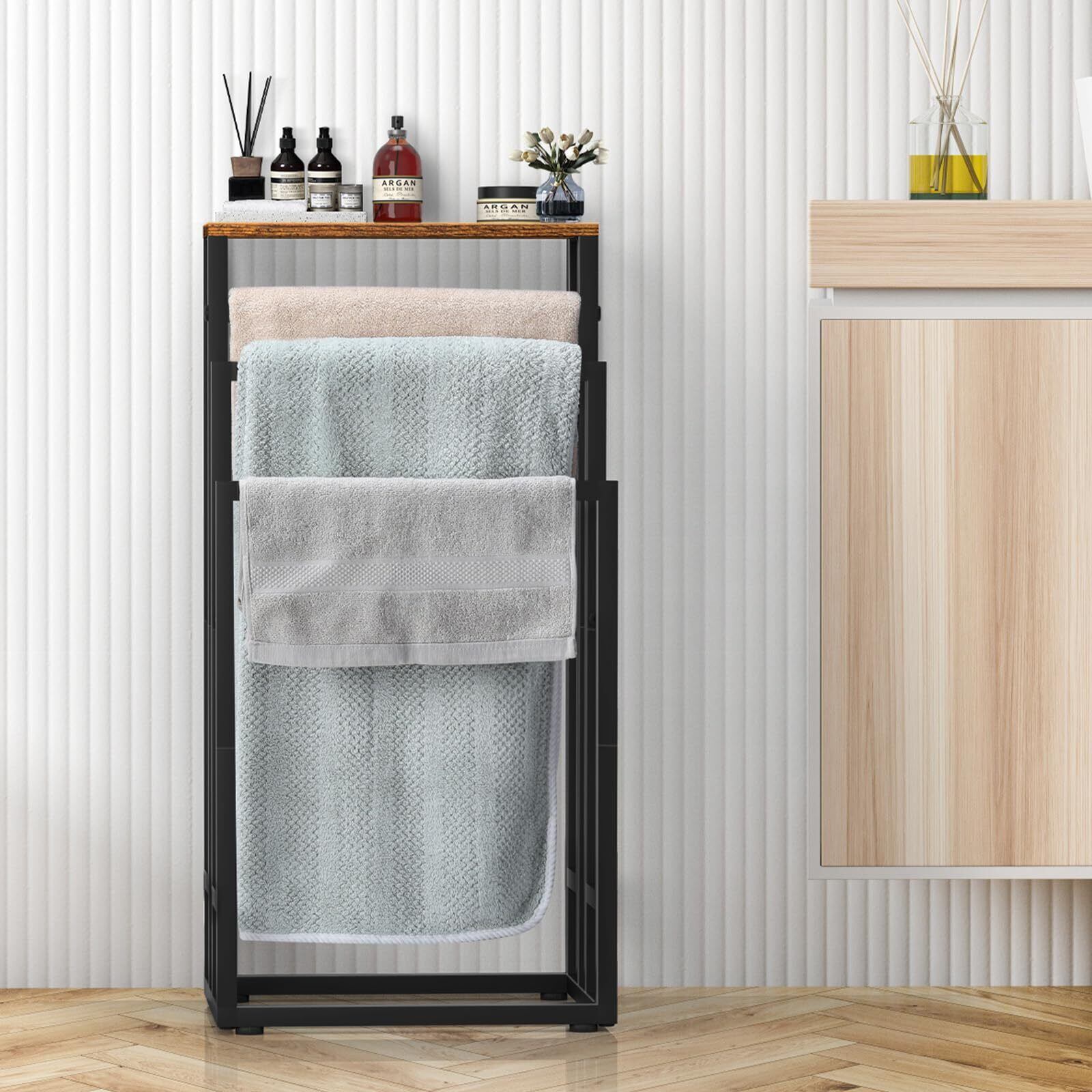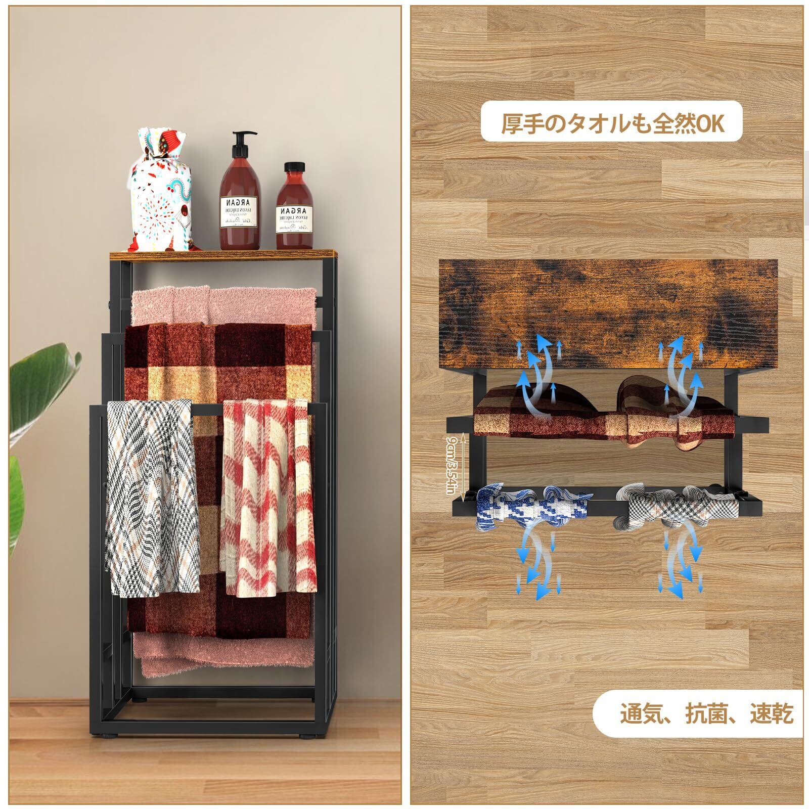 【長期使用&防錆】バスタオルハンガースタンドは高品質の金属素材で作られており、効果的に防水性と防錆性を備えています、浴室など比較的湿気の多い環境に置いても錆びません、バスタオルやタオルも清潔に保ちます