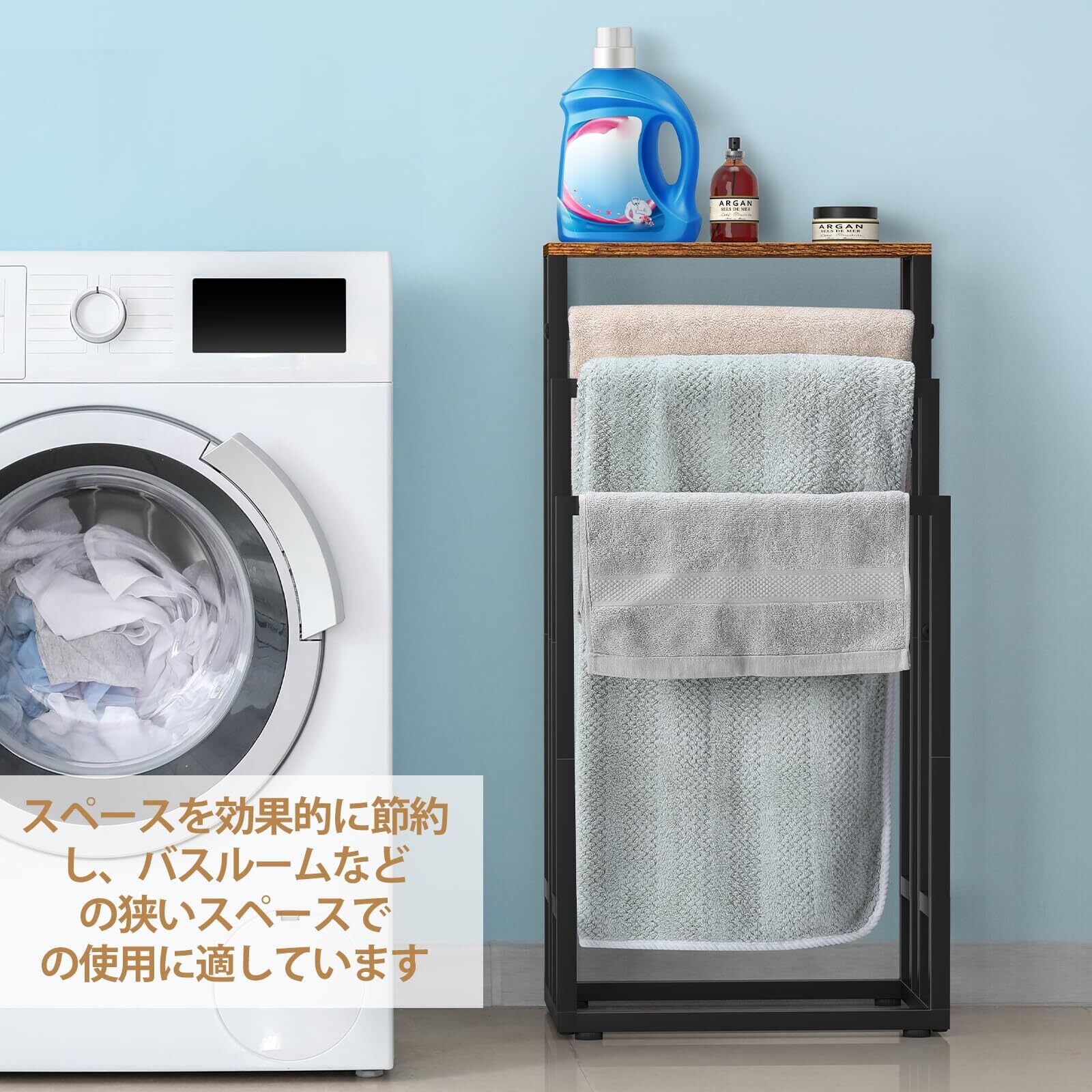 【おしゃれなスタイル】バスタオルスタンドの全体的なデザインはシンプルで型破りで、黒色は非常にファッショナブルに見え、どんなスタイルのホームデザインにも適しています。バスルームにすっきりとしたモダンなスタイルをもたらします、スタイリッシュな見た目と収納機能があり、とても便利です