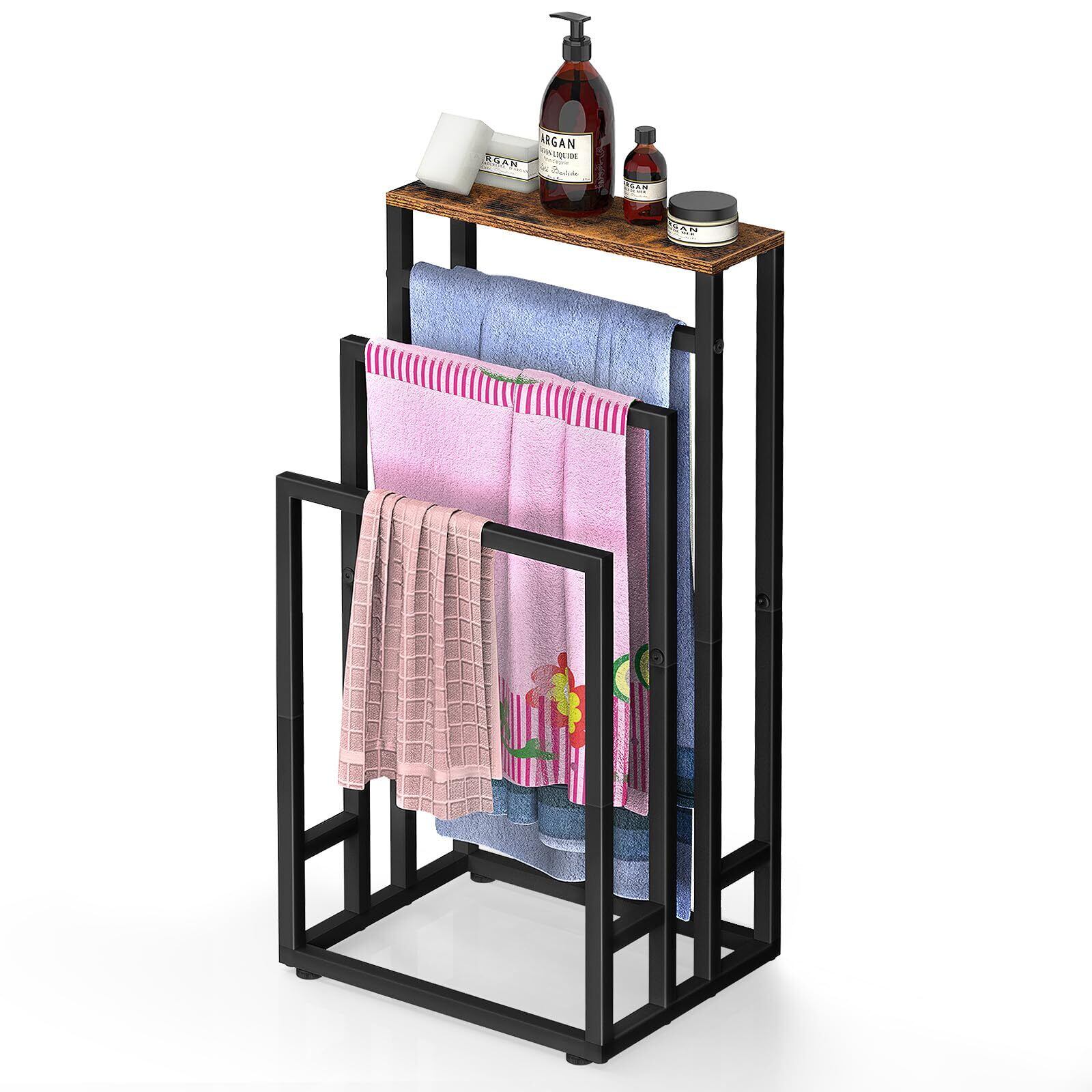 【3連の収納デザイン】ハンガーラックには合計3連の収納があり、日用品を置ける天板も付いています、より多くのバスタオル、タオル、その他の衣類を収納できます。収納機能は強力で、スペースを効果的に節約できるため、小さく置くことができます、バスルームや洗面所などの場所に最適です