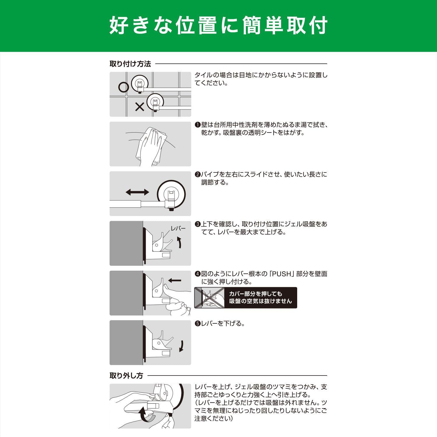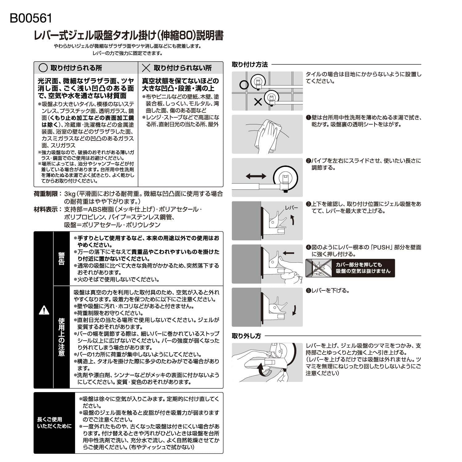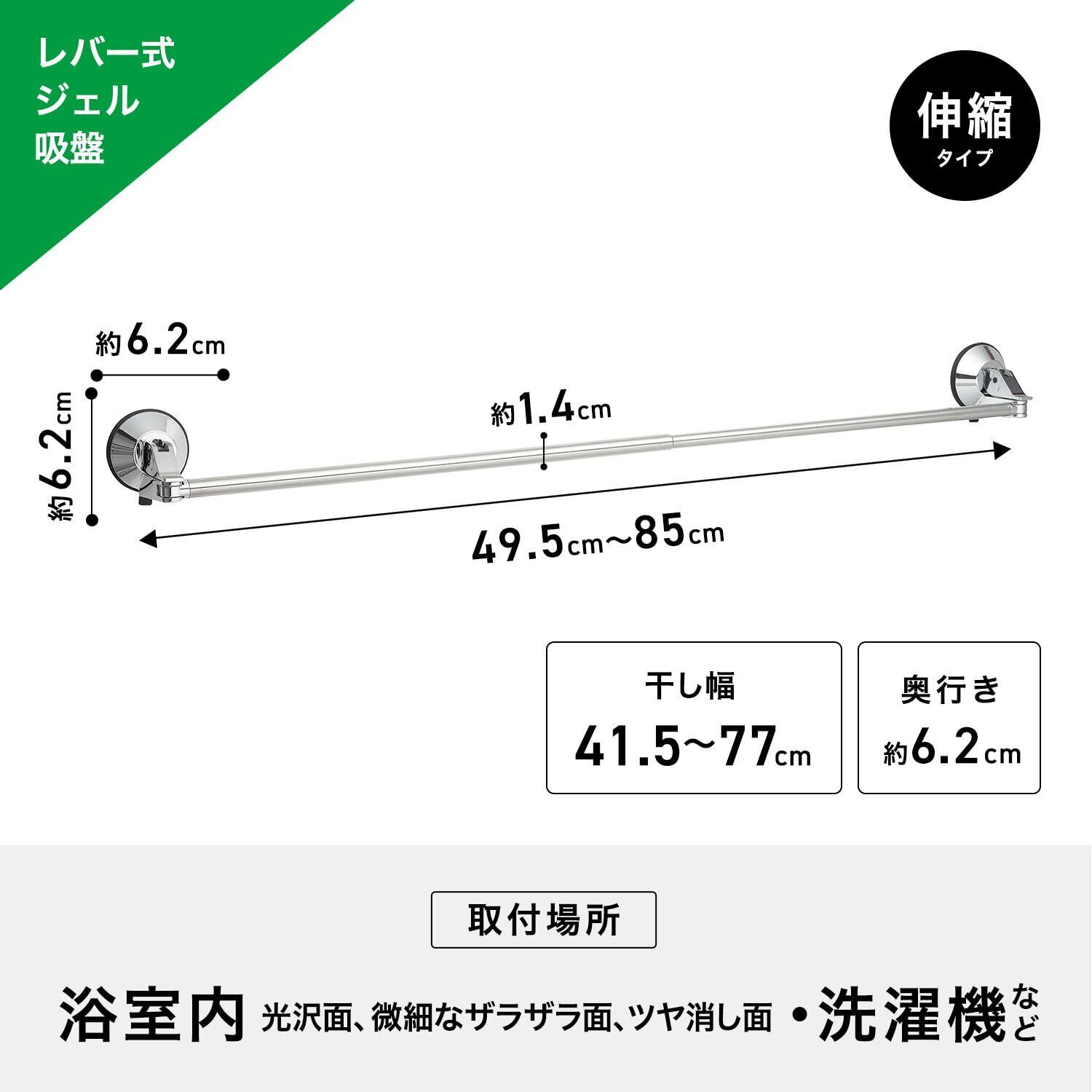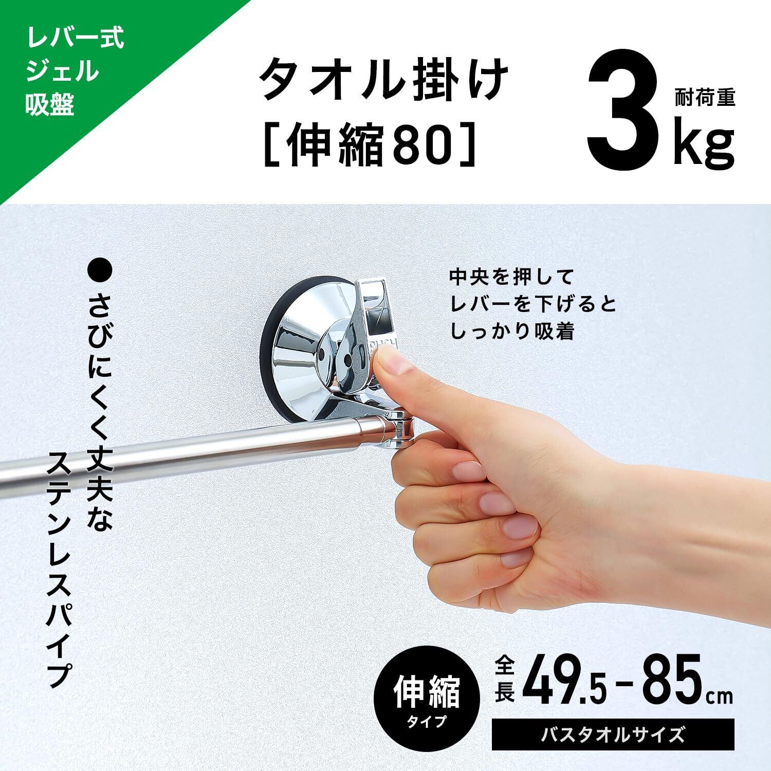 レバー式 ジェル吸盤 伸縮 タオル掛け ステンレス 伸縮幅 49.5~85cm(干幅41.5~77cm) 耐荷重3kg バスタオルサイズ