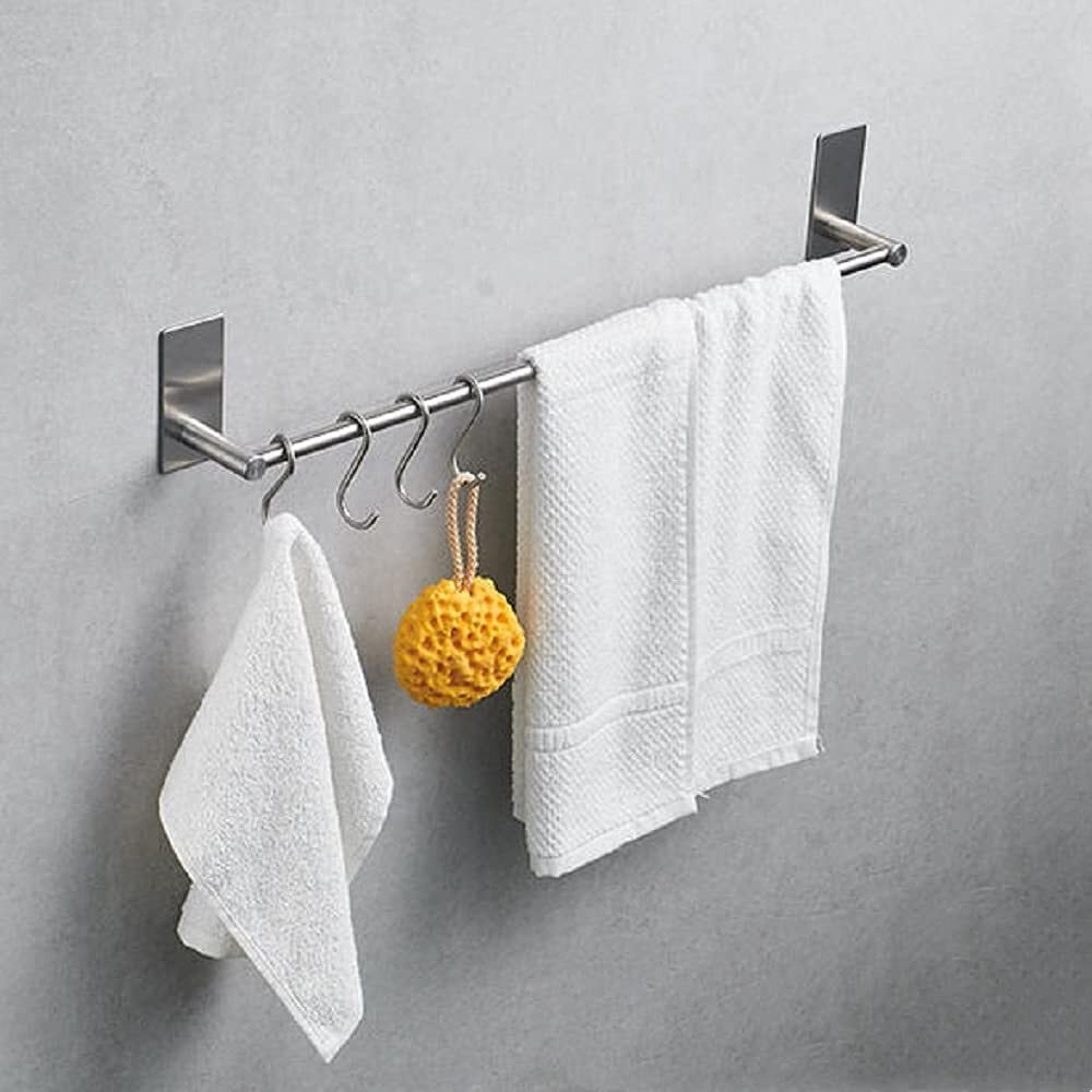 タオル掛け 粘着 タオルハンガー ステンレス タオルかけ 45cm 洗面所 キッチン 風呂場 浴室用タオルバー 壁 穴あけない ふきんかけ フック タオル収納