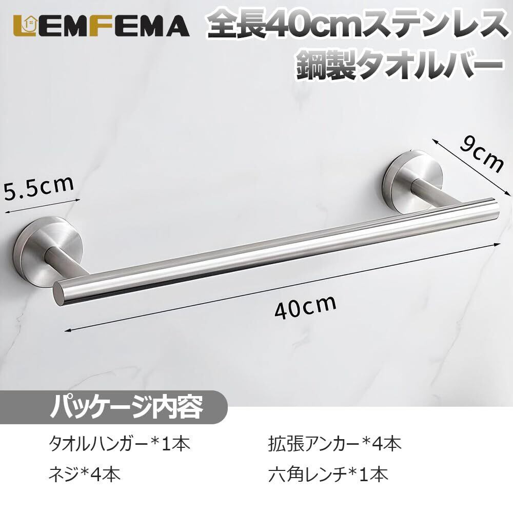 タオル掛け タオルバー タオルハンガー 1個 40cm Lemfema 省スペース ネジとレンチ付き ステンレス 壁掛け タオルホルダー 洗面所 トイレ 浴室 キッチン バスルームアクセサリー つや消し(シルバー)