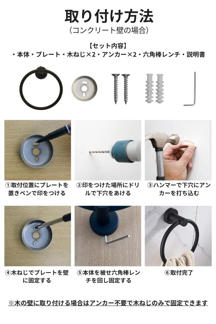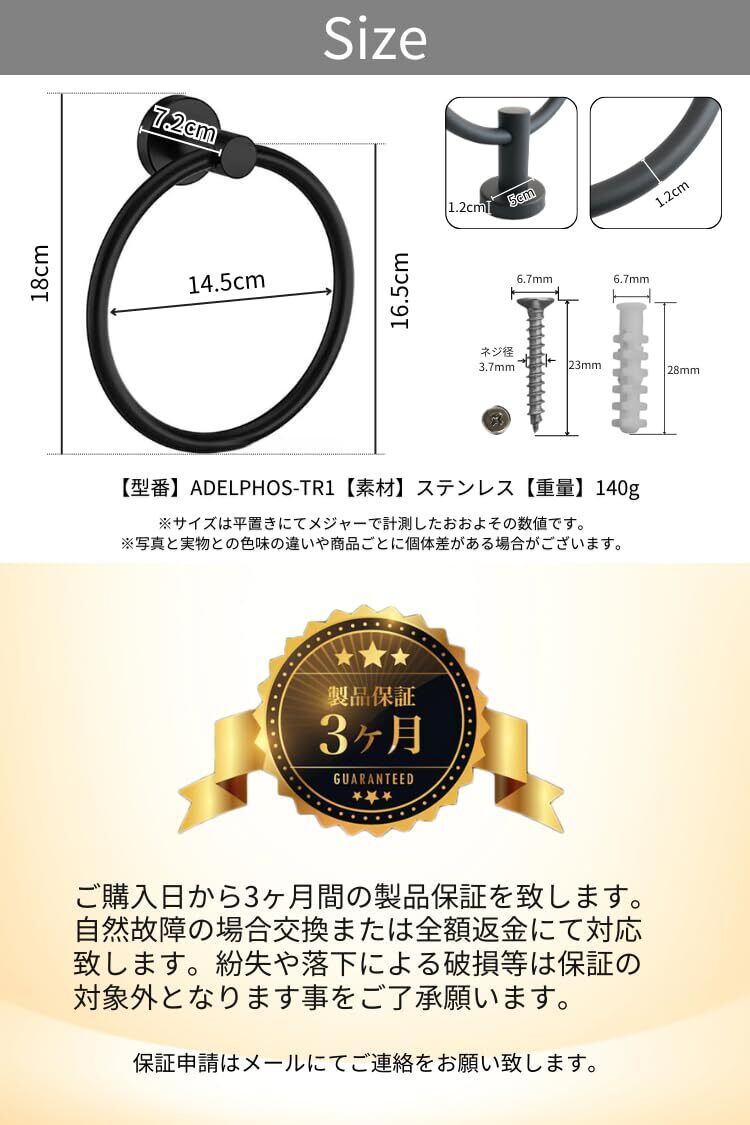 タオルリング タオル掛け ステンレス アンティーク タオルハンガー トイレ バスルームアクセサリー キッチン 浴室 壁掛け ネジ付き 14.5cm TR1 (ゴールド)