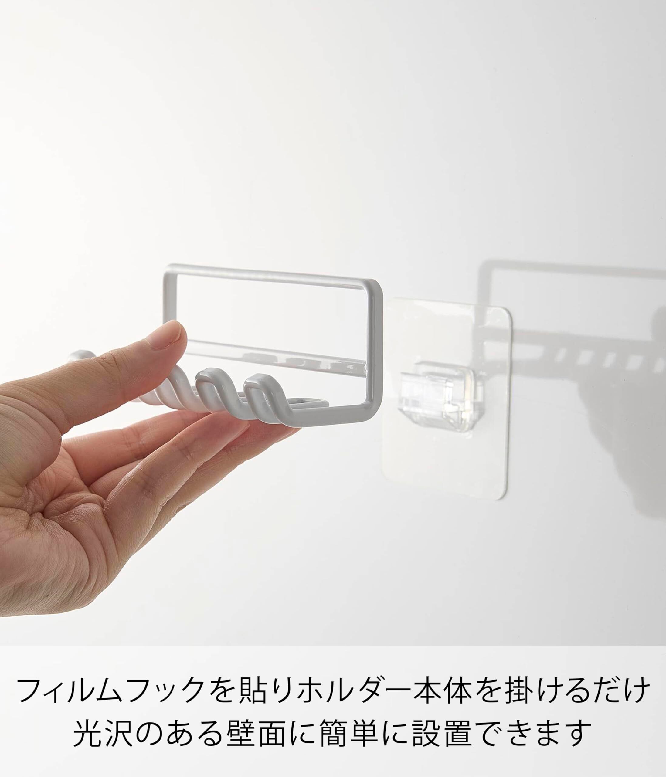 フィルムフックでお好みの位置に簡単取り付けできる替え歯ブラシホルダーです。光沢のある壁面やタイルにも取り付け可能。ヘアゴムなどの小物掛けとしても便利です。