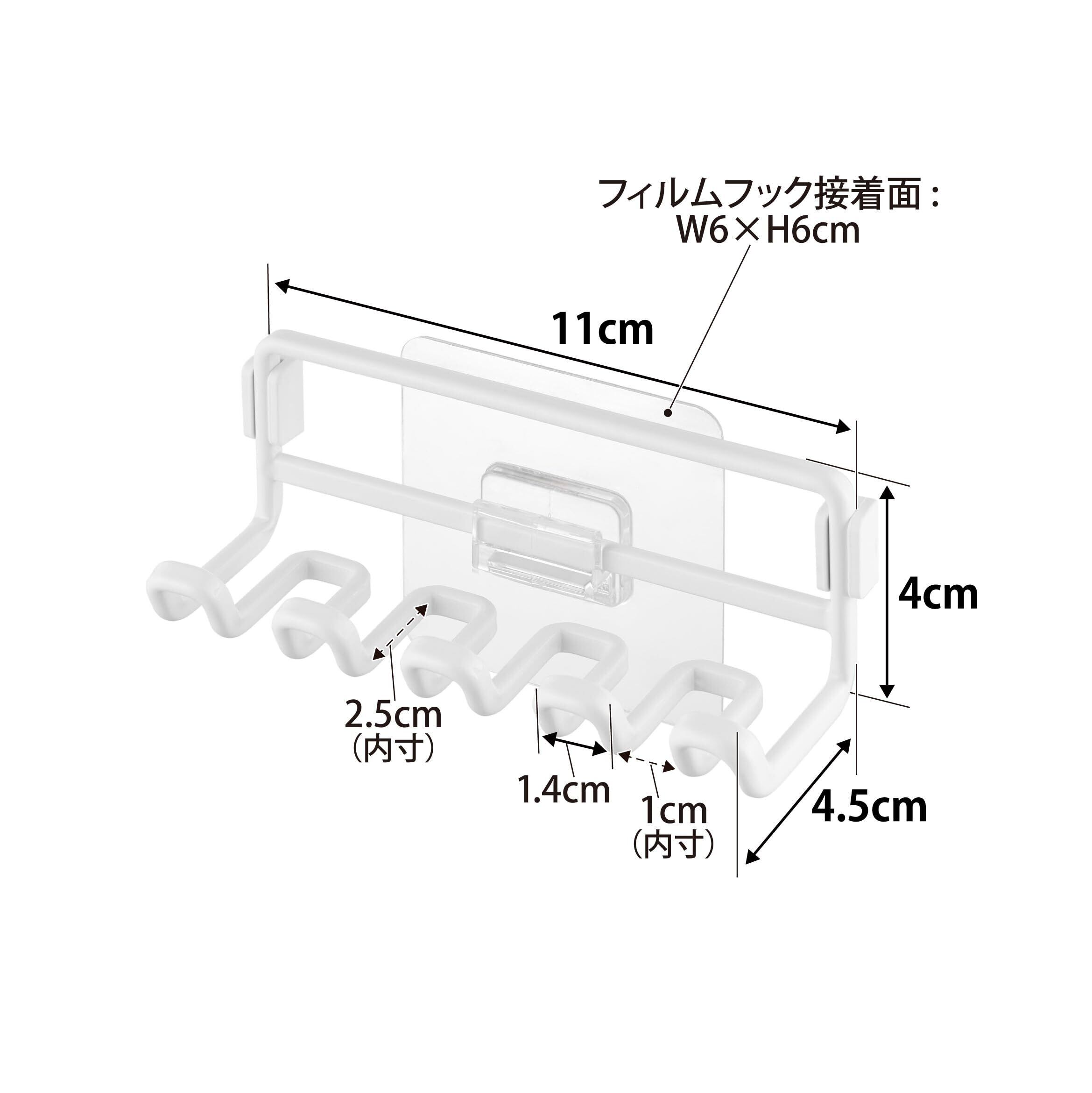 商品サイズ 本体:W11×D4.5×H4cm(フィルムフック・クッション含まず) フィルムフック接着面:W6×H6cm ▪商品重量:90g