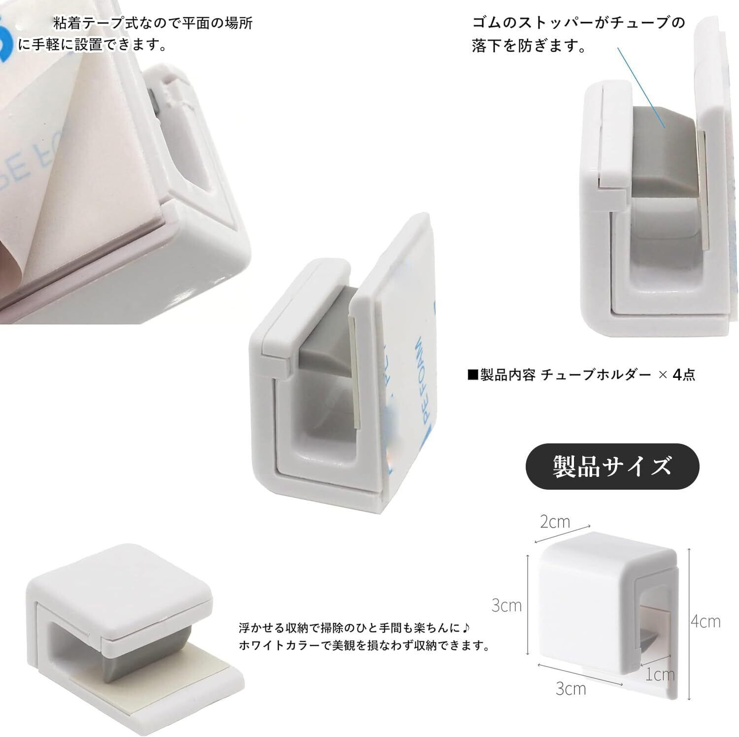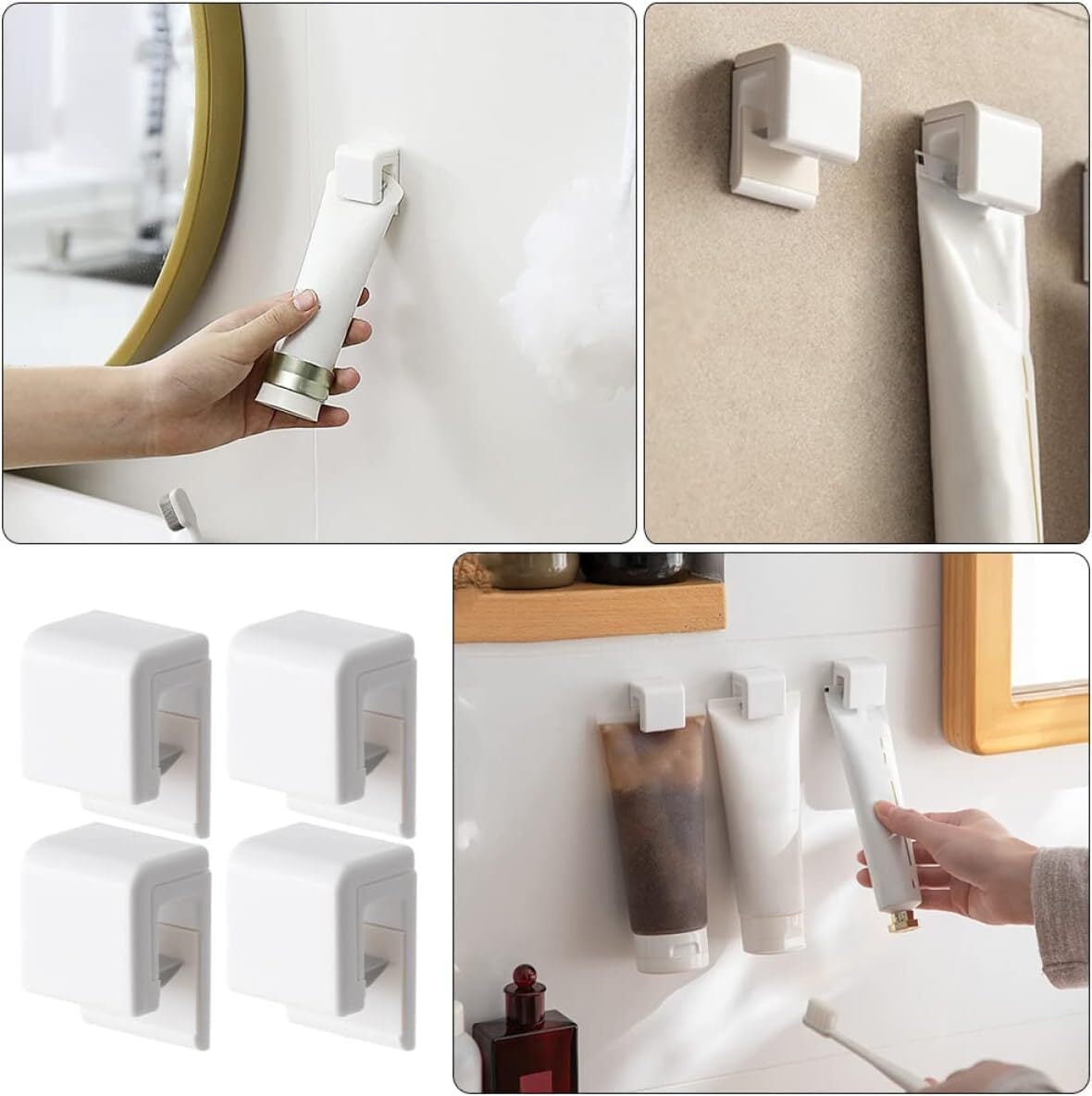 YOOTASIO 4個入り歯磨き粉クリップ (4*3*2cm) 強力粘着 チューブクリップ 歯磨きチューブホルダー 洗顔料・ハンドクリーム・歯磨き粉吊るし収納 人気 便利(白)YT1002