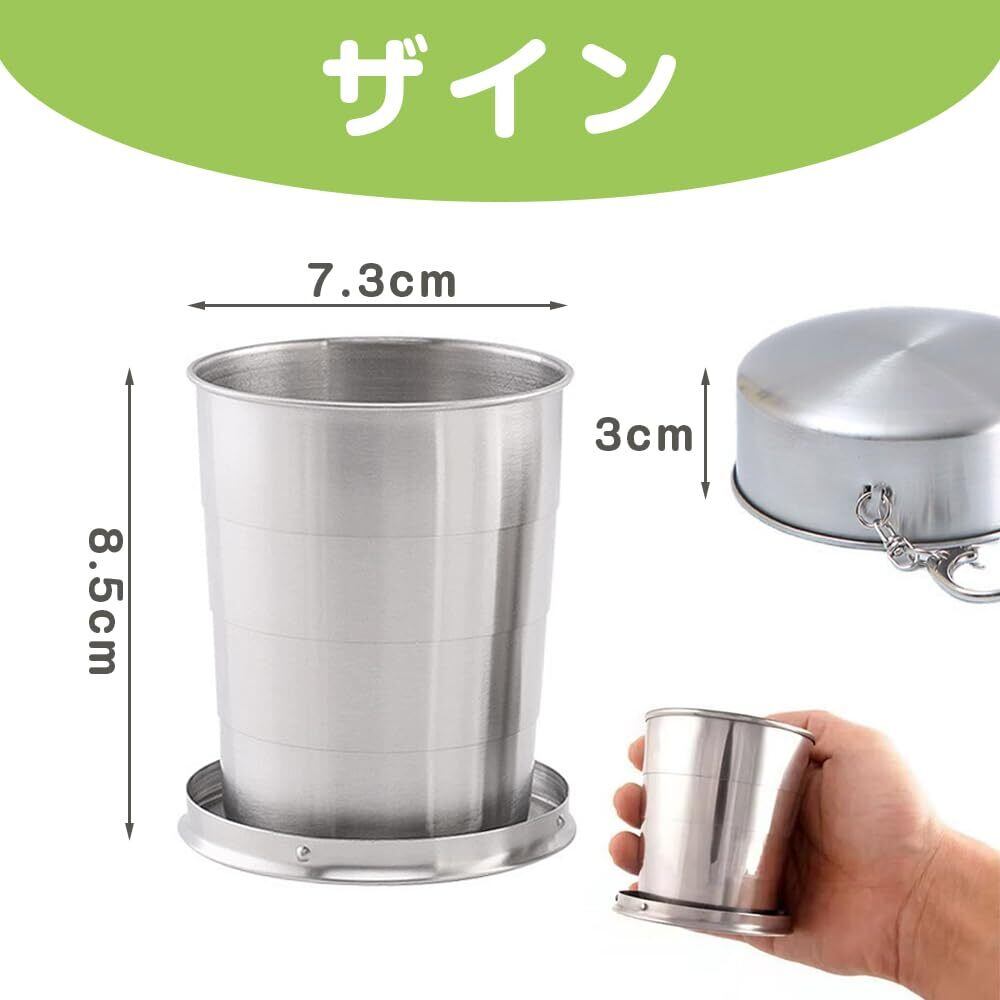 ESJNNK 折りたたみ ステンレス 250ml 伸縮収納式コップ 盃 蓋付き 伸縮カップ ステンレス製 折り畳み 携帯便利 軽量 携帯コップ キーホルダー付き 旅行 ハイキング アウトドア キャンプ用