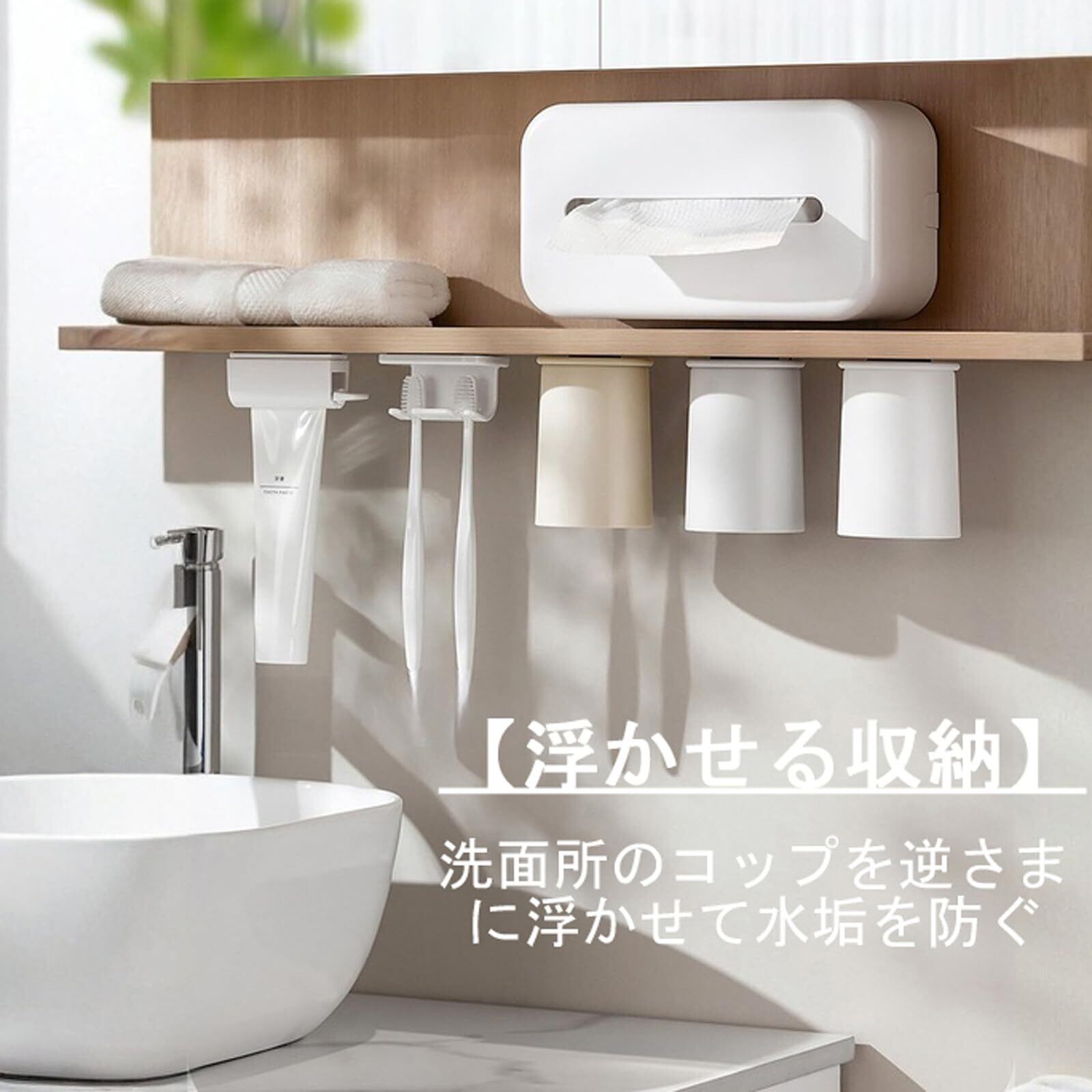 歯磨きコップを逆さまに浮かせて収納できることにより、通気性がよく乾きやすくなり衛生的にご使用いただけます。