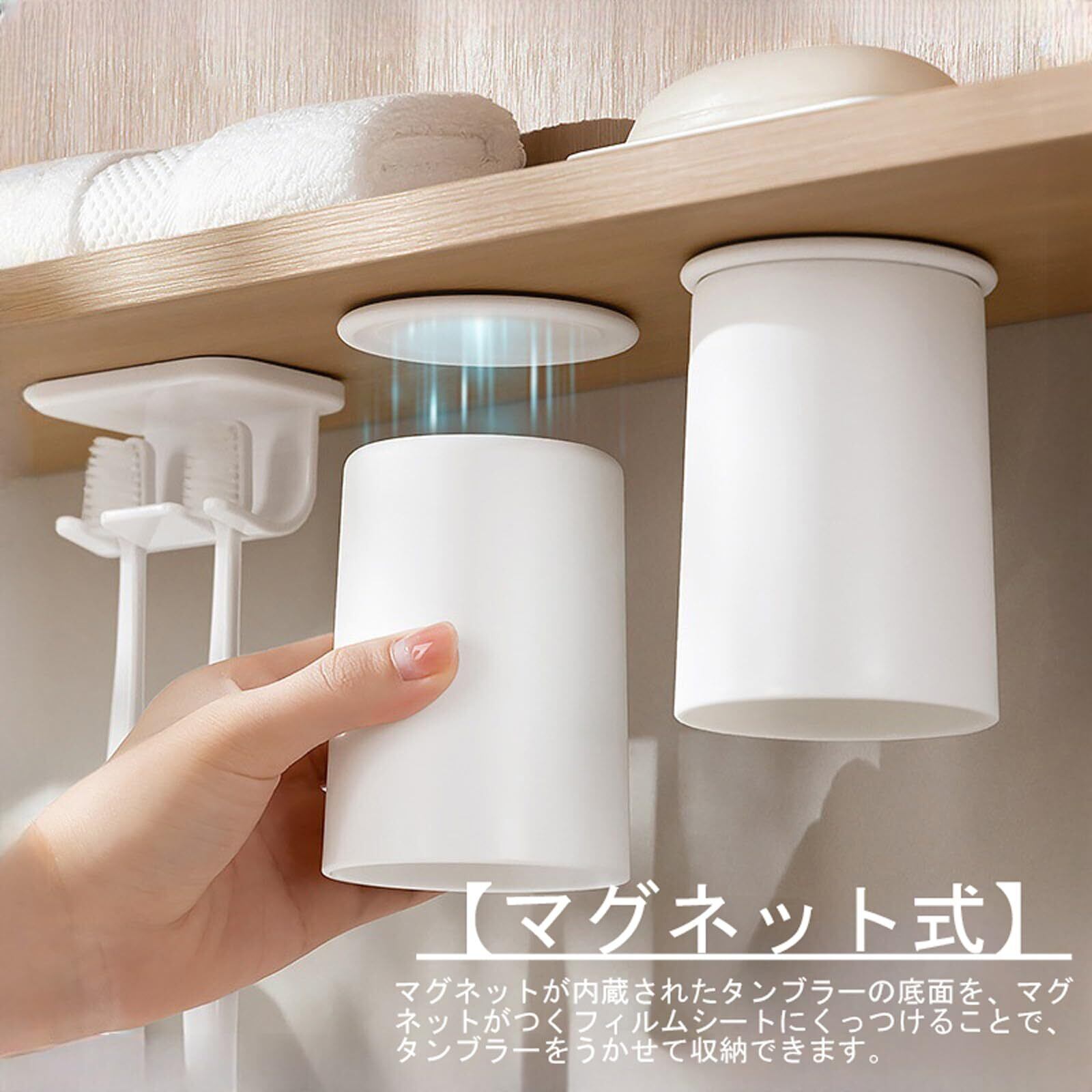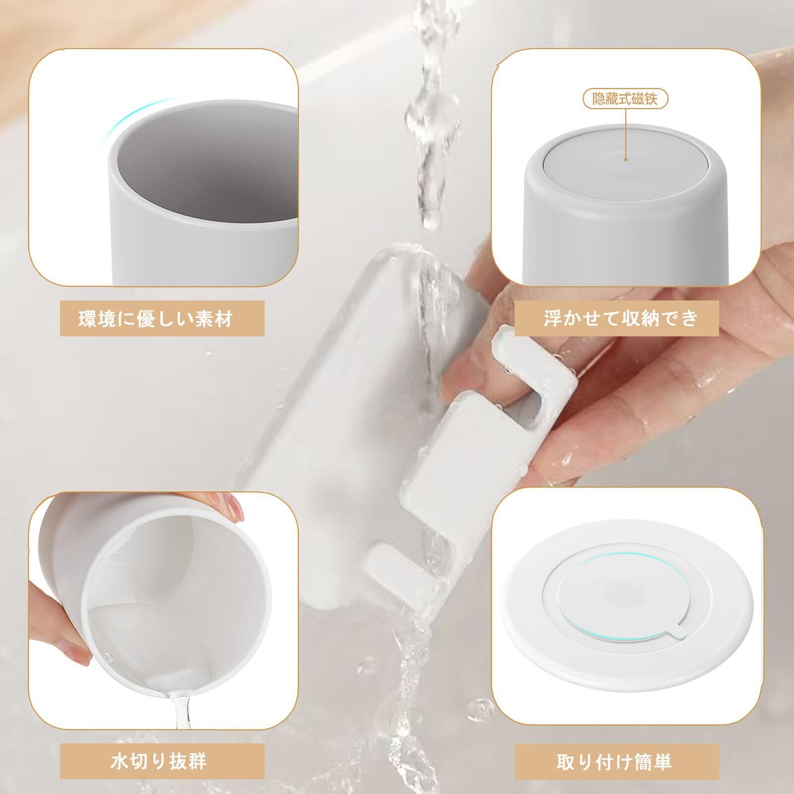 FUNKEIMEI 洗面所 コップ 浮かせる 洗面所コップ 歯磨きコップ マグネットコップ 洗面所 カビない カビ防止 洗面所収納 (ホワイト, (コップ1個))