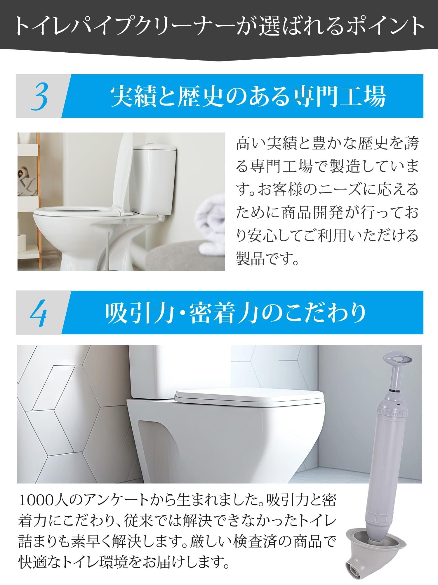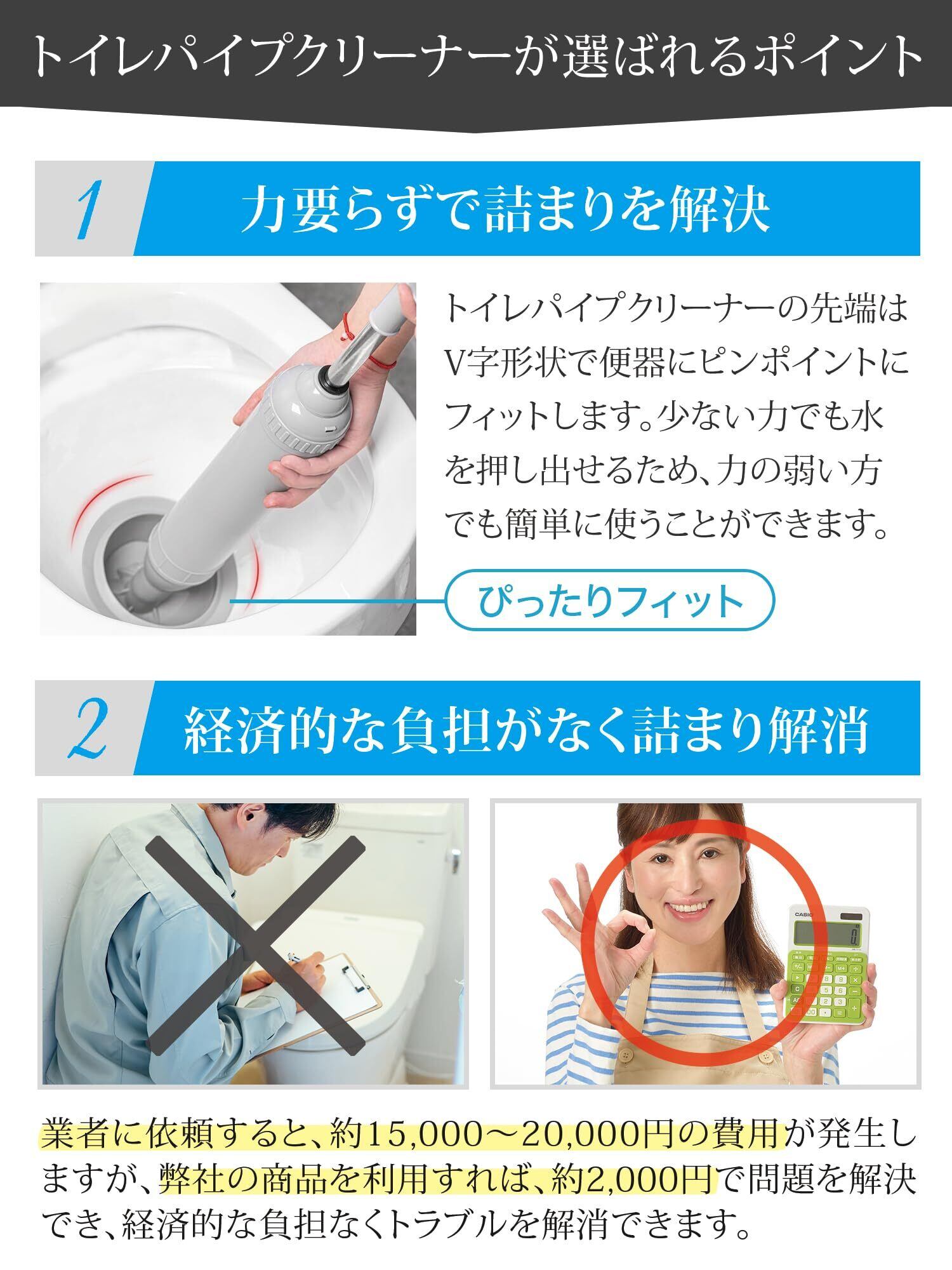 【女性でも簡単に詰まり解消】吸い上げた水を、あまり力を掛けずとも、詰まりの原因を強力に押し出す構造となっております。女性でも簡単に出来るよう設計しております。