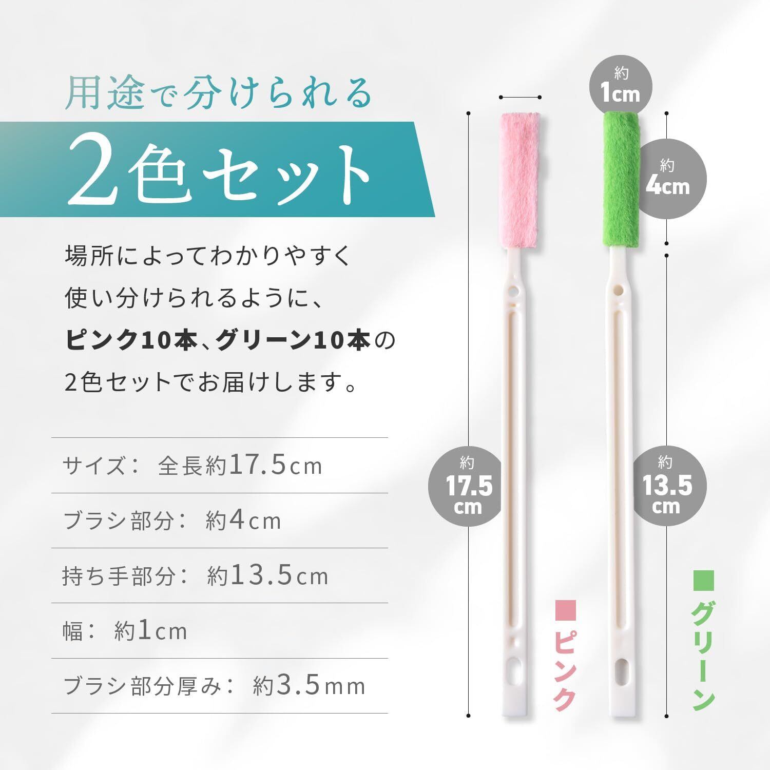 【商品仕様】1本サイズ:全長約17.5cm (ブラシ部分長さ約4cm /持ち手部分約13.5cm /幅約1cm /ブラシ部分厚み約3.5mm)×20本入り 当社の 掃除 ブラシ は便座の隙間、洗面所の水垢、キッチンのコンロ周り、洗濯機の隙間、水筒 ブラシ、車のエアコン など多機能にも利用可能。また、洗って繰り返し使用できます。